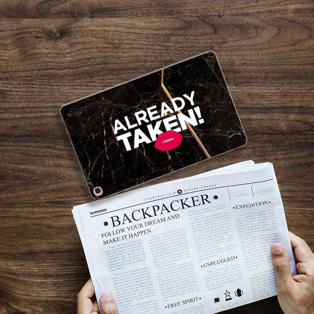 Met deze Samsung Galaxy Tab A 10.1 (2019) Back cover met naam met Already Taken Black tekst maak je duidelijk dat jouw tablet een kostbaar bezit is, waar je zeer lang over wilt beschikken. Je tablet neem je waarschijnlijk vaak ter hand, dus dan zal de boodschap als je over dit hoesje beschikt zeker weten overkomen. De TPU case wordt alleen aan de bovenkant bedrukt en is zeer flexibel. De randen van het hoesje blijven transparant. Wil je een eigen tekst op je hoesje zetten? Dit kan ook, met onze Phone Case Designer. Deze unieke ontwerpmodule is ook geschikt om het design uit te breiden met foto’s, effecten en patronen.