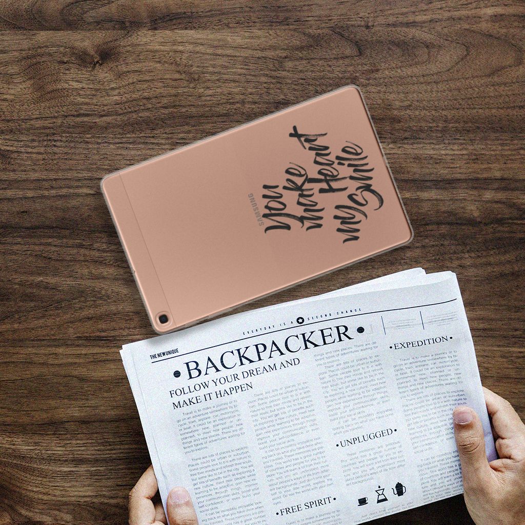 Ben je op zoek naar een uniek telefoonhoesje voor je Samsung Galaxy Tab A 10.1 (2019)? Dan ben je bij B2C Telecom aan het juiste adres! Speciaal voor jou hebben we dit prachtige Heart Smile design in onze collectie hoesjes opgenomen. Het design wordt bedrukt op een Back cover met naam en is gemaakt van flexibel rubber. Het design wordt alleen aan de bovenkant van het hoesje bedrukt en de randen blijven transparant. Aan de zijkanten zijn uitsparingen gemaakt waardoor je met gemak alle knoppen en poorten kunt bedienen. Wij adviseren om dit hoesje in combinatie met een screenprotector te gebruiken voor een langere levensduur van je tablet. Wil je dit design hoesje nog iets extra's geven? Voeg dan gratis je naam of een quote toe! Is dit design hoesje toch niet helemaal wat je zocht? Ontwerp dan zelf een tablethoesje in ons ontwerpprogramma.