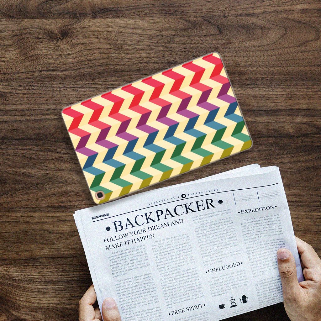 Ben je op zoek naar een uniek telefoonhoesje voor je Samsung Galaxy Tab A 10.1 (2019)? Dan ben je bij B2C Telecom aan het juiste adres! Speciaal voor jou hebben we dit prachtige Zigzag Color design in onze collectie hoesjes opgenomen. Het design wordt bedrukt op een Hippe Hoes en is gemaakt van flexibel rubber. Het design wordt alleen aan de bovenkant van het hoesje bedrukt en de randen blijven transparant. Aan de zijkanten zijn uitsparingen gemaakt waardoor je met gemak alle knoppen en poorten kunt bedienen. Wij adviseren om dit hoesje in combinatie met een screenprotector te gebruiken voor een langere levensduur van je tablet. Wil je dit design hoesje nog iets extra's geven? Voeg dan gratis je naam of een quote toe! Is dit design hoesje toch niet helemaal wat je zocht? Ontwerp dan zelf een tablethoesje in ons ontwerpprogramma.