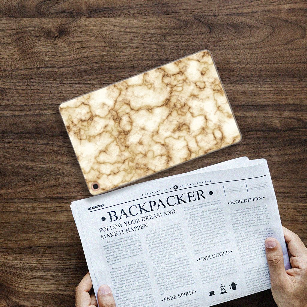Deze Samsung Galaxy Tab A 10.1 (2019) Tablet Back Cover met Marmer Goud is het waard om een blokje voor om te rijden. Dit is overigens niet nodig. Als je het hoesje met goud marmer nu bestelt heb je het zeer snel in huis. Je kunt er bij wijze van spreken thuis op gaan zitten wachten. Je hebt diverse soorten marmer. We hebben enkele fraaie kleuren op onze hoesjes gezet, zoals in dit geval het gouden marmer. Het goud marmer wordt bedrukt op de achterkant van de tpu case, die beschikt over alle nodige uitsparingen waardoor je alle knoppen en poorten van je tablet kunt bedienen. Verder is de case met goud marmer gemaakt van zeer flexibel materiaal. De rijkheid aan kleuren en varianties in afwerking is een schitterende eigenschap van marmer. Dit tpu hoesje met goud marmer heeft ook veel schitterende eigenschappen en is de ideale bescherming voor jouw tablet.