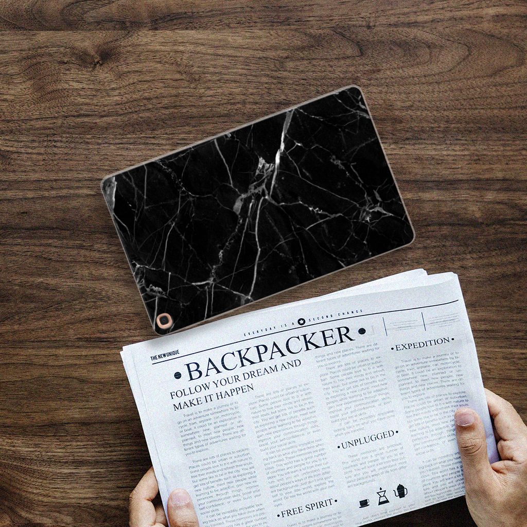 Dit design hoesje met Marmer Zwart is voor de artistieke personen onder ons. De Grieken en Romeinen wisten het materiaal al te waarderen door het in de bouw toe te passen. Naast het witte marmer met haar zacht grijze geaderde belijning zijn de diverse soorten in een gevarieerd kleurenpallet te krijgen. We hebben mooie kleuren op design hoesjes gezet, zoals in dit geval zwart marmer. Dit is een Samsung Galaxy Tab A 10.1 (2019) Tablet Back Cover met marmer in bruine kleur. Het marmer wordt bedrukt op de voorkant van een tpu hoesje, die beschikt over opstaande randen aan de voorkant en heel goed combineert met een screenprotector van glas of van folie. De rijkdom aan kleuren en varianties in afwerking geeft ontwerpers de vrijheid om met marmer hele mooie architectonische projecten te realiseren. Wij hebben onze designer tevens veel vrijheid gegeven. Het resultaat zie je terug in deze tpu case met zwart marmer, die jouw tablet goed beschermt. De zijkanten van de case worden niet bedrukt met het zwarte marmer.