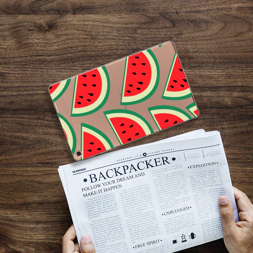 Watermeloenen zijn uitstekende dorstlessers, misschien dat je daarom juist in de zomermaanden extra enthousiast raakt van dit design hoesje Watermelons. Jij blijft gezond als je zo nu en dan een watermeloen neemt, jouw tablet blijft in tact als je er deze Samsung Galaxy Tab A 10.1 (2019) Tablet Cover omheen doet. Deze case wordt alleen aan de bovenkant bedrukt met watermeloenen is zeer flexibel. De randen van het hoesje blijven transparant. Je kunt ook kiezen voor andere soorten fruit op je hoesje. Kijk maar eens naar onze andere design hoesjes op onze website.