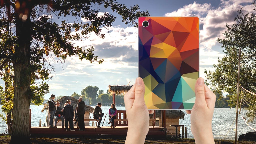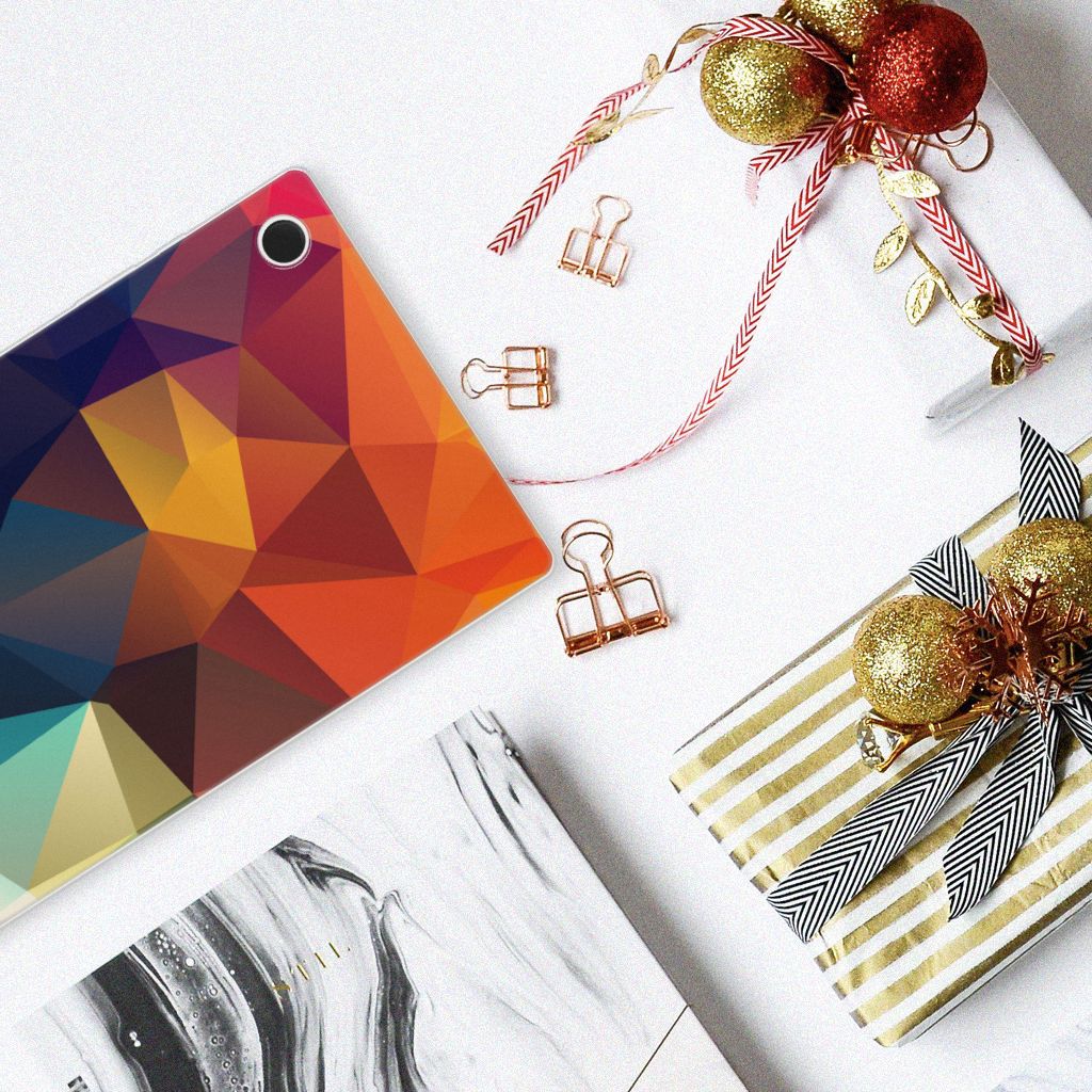 Veelkleurige driehoeken die samen eindeloze asymmetrische patronen lijken te vormen. Het is het abstracte schouwspel dat op dit fraaie hoesje voor je Samsung Galaxy Tab A8 2021/2022 direct de aandacht trekt noemen we voor het gemak trekt noemen we voor het gemak Polygon Color. De een ziet er een berglandschap in, de ander piramides. Wat zie jij erin? Zeker is in elk geval dat de aanblik van dit fascinerende ontwerp je niet snel gaat vervelen. Het kleurige spel van lijnen en vlakken blijft eindeloos boeien en geeft jouw Back Cover een hippe en kunstzinnige uitstraling. De kracht die het lijnenspel uitstraalt, komt ook terug in het hoesje zelf. Dit hoesje wordt alleen aan de bovenkant bedrukt en is zeer flexibel. De randen van het hoesje blijven transparant. Wat wil je nog meer?