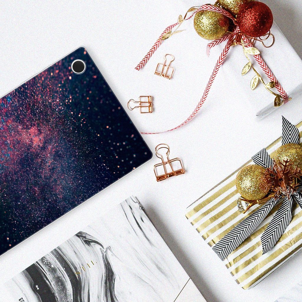 Je waant je in de zevende hemel met dit kunstzinnige, glitterachtige design hoesje met paarse en blauwe kleuren tegen een inktzwarte achtergrond. Het tablethoesje heeft ook een wat science fiction achtige allure. Met deze design Stars case zul je zeker opvallen. Als dit je bedoeling is, bestel dat snel dit waanzinnig mooie product voor je Samsung Galaxy Tab A8 2021/2022. Het tablethoesje is van alle gemakken voorzien en combineert een hele fraaie uitstraling met maximaal comfort. Bovendien is het gemaakt van zeer stevig en flexibel materiaal. Het unieke design, door B2C Telecom ontworpen, staat op een Back Cover. Dit hoesje wordt alleen aan de bovenkant bedrukt en is zeer flexibel. De randen van het hoesje blijven transparant en worden niet bedrukt. Met dit hoesje past jouw tablet altijd in je tas.