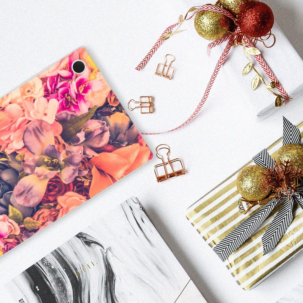 Dit Bosje Bloemen doet een mens en zijn tablet goed. De oranje, paarse en roze bloemen op deze Samsung Galaxy Tab A8 2021/2022 Siliconen Hoesje geven jouw tablet een zeer sierlijke uitstraling. Je wordt er ook meteen vrolijker van als je aan het appen, mailen of aan het bellen bent. Valt dan je tablet op de grond, dan zal er dankzij de tpu case voor de tablet met oranje, paarse en roze bloemen geen schade ontstaan. Helemaal niet als je er een screenprotector bij hebt gekocht. Onze cases met oranje, paarse en roze bloemen zien er zeer prettig uit en zijn heel praktisch, getuige onder meer de opstaande randen en het flexibele materiaal. Alleen de achterkant van dit hoesje wordt bedrukt met oranje, paarse en roze bloemen. Op deze case is het ook mogelijk je eigen ontwerp te zetten. In no time ontwerp je zelf een hoesje met daarop foto’s van jouw favoriete bloemen.
