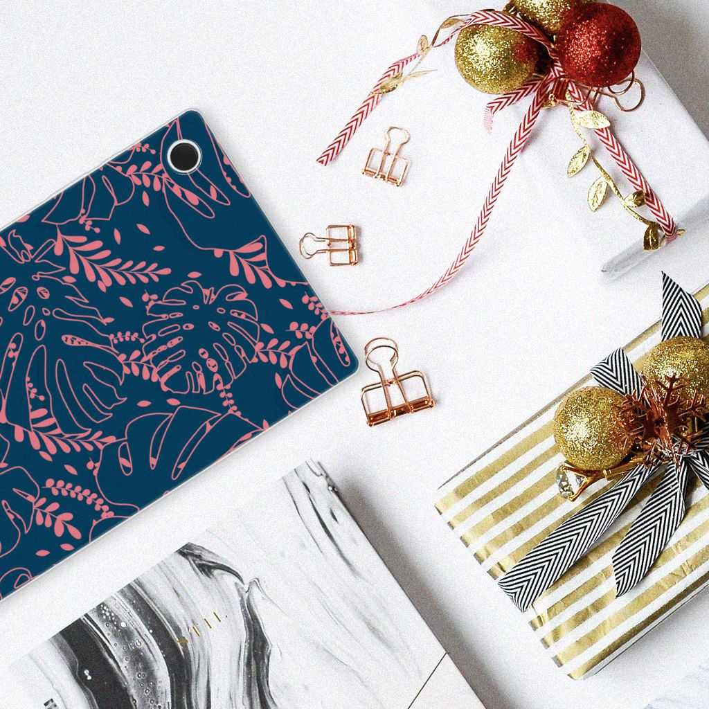 Je voelt je verbonden met de natuur als je kiest voor deze Samsung Galaxy Tab A8 2021/2022 Siliconen Hoesje met print van roze bladeren op een blauwe achtergrond. De print bestaat uit verschillende roze bladeren en dit zorgt voor een fraai decoratief geheel. Met dit patroon van roze bladeren op een blauwe achtergrond creëer je een opvallende uitstraling voor jouw tablet. Jij doet er verstandig aan om je tablet te beschermen met dit design hoesje met roze bladeren op een blauwe achtergrond, die staan op een tpu case voor de tablet. Dit hoesje kenmerkt zich onder meer door de opstaande randen aan de voorzijde, waardoor bij een val van de tablet het scherm de grond niet raakt. Voel jij jezelf happy bij een beeld van roze bladeren op een blauwe achtergrond, dan is deze case met print een uitstekende optie. Het beschermt jouw tablet aan de achterkant en zijkanten zeer goed. Het TPU is zeer flexibel en onbreekbaar. De zijkanten van de case blijven transparant.