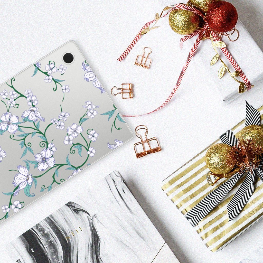 Witte bloemen staan voor puurheid, frisheid, helderheid en eenvoud. Geen wonder dus dat ze al heel lang populair zijn en ook prachtig staan op een tablethoesje. Niet iedereen houdt immers van kleurrijke designs. Toch graag bloemetjes op je Siliconen Hoesje maar zonder bonte kleuren? Dan is dit hoesje voor de Samsung Galaxy Tab A8 2021/2022 perfect voor jou. De hoes voor de tablet is gemaakt van TPU, een flexibel maar heel erg sterk plastic dat niet kapot te krijgen is. We adviseren om dit type hoesje te combineren met een screenprotector, zodat je scherm ook goed beschermd is tegen krassen en beschadigingen. De inkt die we gebruiken kan in het begin een sterke geur afgeven. Dit is echter tijdelijk niet schadelijk.
