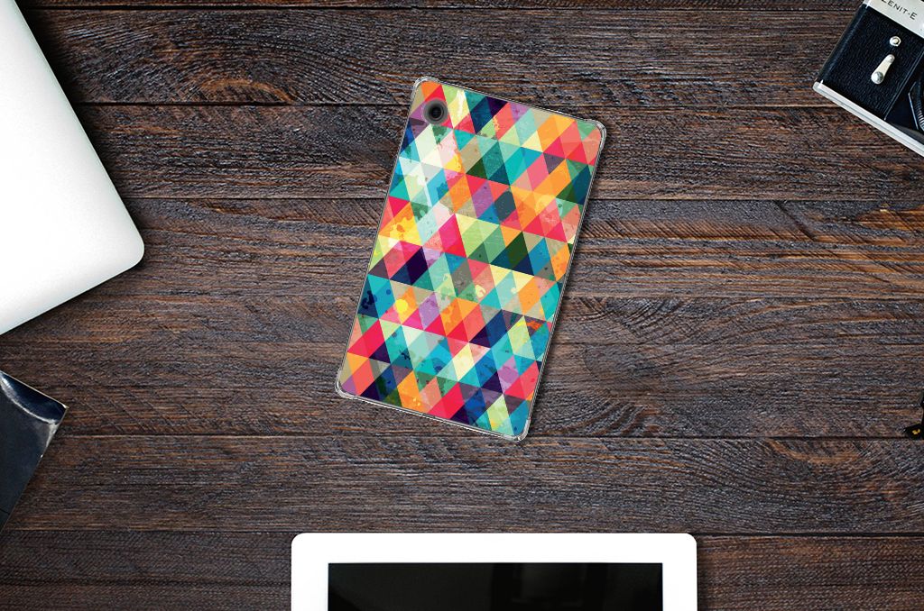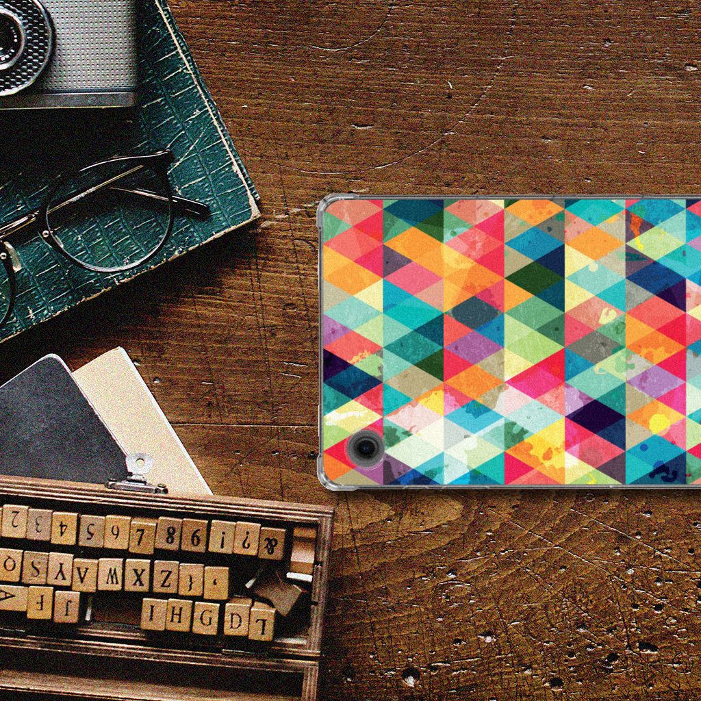 Van dit geruite design hoesje moet je een beetje houden. Maar als je het eenmaal in bezit hebt, ben je waarschijnlijk binnen no time verkocht. Het design heeft ruitjes in alle kleuren van de regenboog en door de grijze achtergrond kan het hoesje enigszins druk overkomen. Maar tegelijkertijd is dit de kracht van het hoesje. Met dit design hoesje Geruit zal je namelijk heel erg opvallen. Dit is voor veel vooral jonge tablet gebruikers een belangrijk voordeel. Deze geruite print staat op een Samsung Galaxy Tab A9 Hippe Hoes. Dit zeer flexibele tablethoesje heeft alle nodige uitsparingen en past altijd in je tas. De case is aan de bovenkant bedrukt, de randen blijven transparant.