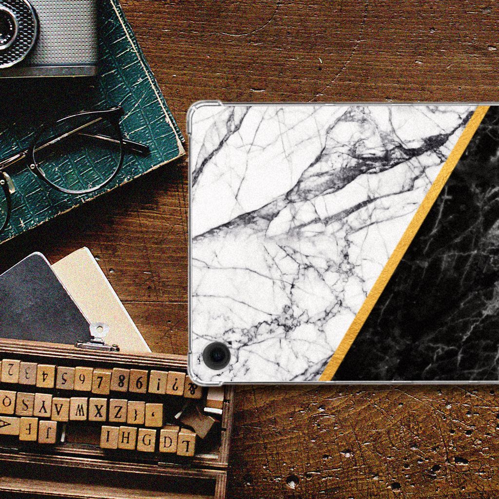 Dit design hoesje met zwartwit marmer is zeer geschikt voor jouw kostbare tablet. Vanwege zijn prachtige lichtval en vastheid is marmer zeer gewild als bouwmateriaal. Op jouw tablet kun je lange tijd bouwen als jij kiest voor deze hele mooie Samsung Galaxy Tab A9 Plus Tablet Back Cover. Naast het zwart-witte marmer zijn er de diverse marmersoorten in een ruim kleurenpallet te krijgen. Deze tabletcase met marmer in zwart-wit wordt aan de achterzijde bedrukt. De case beschikt over opstaande randen en is gemaakt van onbreekbaar materiaal. De randen van de case in zwart wit marmer blijven transparant. Wij hebben onze designer veel vrijheid gegeven met het ontwerpen dit mooie hoesje. Het resultaat zie je terug in deze case met zwartwit marmer, dat een hele goede bescherming is voor jouw tablet.