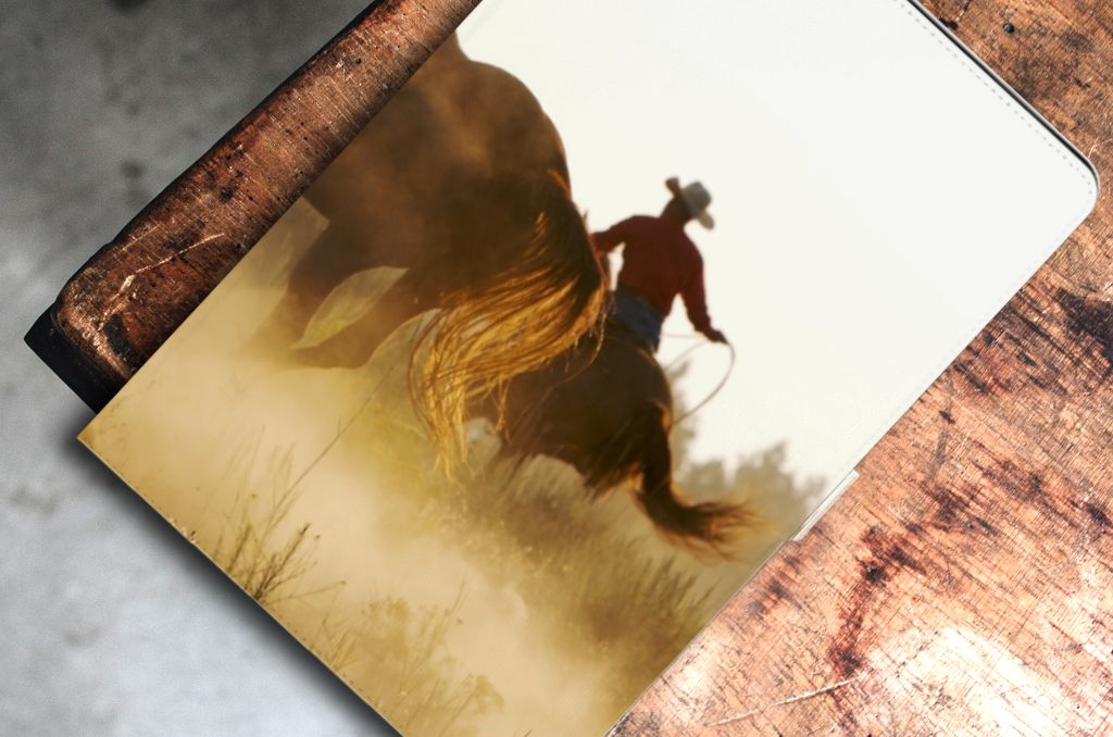 Ben je op zoek naar een uniek tablethoesje met standaard voor je Samsung Galaxy Tab S7 FE | S7+ | S8+? Dan ben je bij B2C Telecom aan het juiste adres! Speciaal voor jou hebben we dit prachtige Cowboy design in onze collectie hoesjes opgenomen. Het design wordt bedrukt op een Flip Case en is gemaakt van hoge kwaliteit PU-leer. Wat dit hoesje zo uniek maakt is dat alle zijden van het hoesje worden bedrukt. De voor- achterkant, rugzijde en het lipje! Zo'n uniek tablethoesje vind je nergens! De houder is gemaakt van TPU en heeft de nodige uitsparingen zodat je met gemak alle knoppen en poorten kunt bedienen. Daarnaast kun je je tablet eenvoudig in twee standen neerzetten. Erg fijn als je graag leest of filmpjes kijkt op de tablet. Door het dunne design en magnetische sluiting neem je je tablet gemakkelijk overal mee naar toe. Wil je dit tablethoesje nog iets extra's geven? Voeg dan gratis je naam of een quote toe! Is dit design hoesje toch niet helemaal wat je zocht? Ontwerp dan zelf een hoesje in ons ontwerpprogramma.