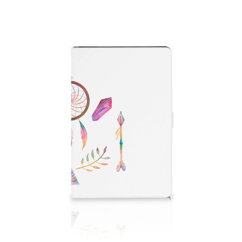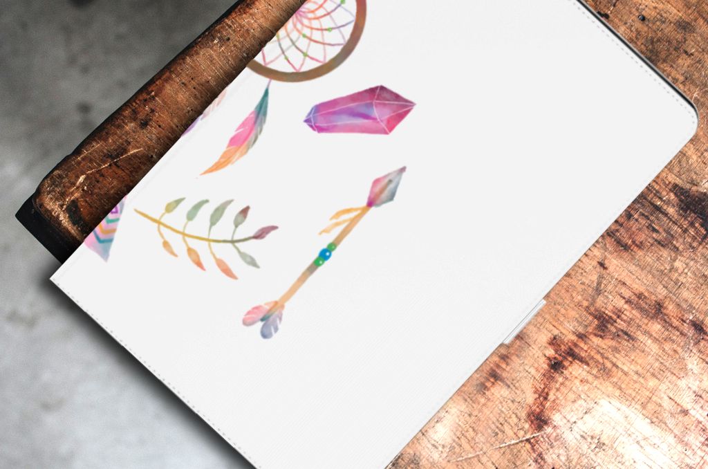 Een dromenvanger werd lang geleden al door een indianenvolk in Noord-Amerika gebruikt om nare dromen te weren. Nu nog hangen mensen over de hele wereld dromenvangers boven hun bed. Maar ook op een telefoonhoesje staat zo’n boho dreamcatcher heel mooi. Dit mooie design dat bestaat uit een tipi, pijlen en dromenvanger heeft veel verschillende prachtige kleuren. Maar omdat het ontwerp minimalistisch en klein is, is het design toch subtiel te noemen. Dit ontwerp staat op een Hippe Tablet Hoes voor je Samsung Galaxy Tab S7 FE | S7+ | S8+. Het tablethoesje met standaard is gemaakt van PU-leer en heeft een tablethouder binnenin van TPU. Je kunt de hoes in twee verschillende standen horizontaal neerzetten. Dat is super handig bij het kijken van video’s. Zo heb je namelijk altijd je handen vrij. De hoes beschikt over een magnetisch lipje als sluiting en heeft handige uitsparingen voor knoppen en de camera van je tablet.