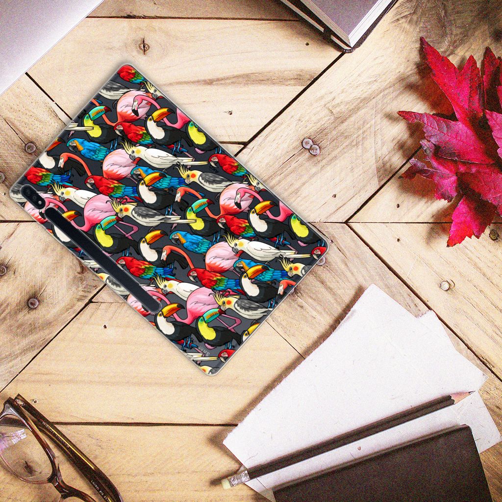 Dit exotische hoesje vol prachtige vogels is een genot voor het oog. Dankzij de felgekleurde toekans, papegaaien, flamingo’s en kaketoes op dit design word je meteen vrolijk als je naar dit hoesje kijkt. Je waant je meteen in de tropen met dit bonte gezelschap tegen een witte achtergrond. Het ontwerp staat op een Back Case voor de Samsung Galaxy Tab S7 Plus | S8 Plus. De hoes voor de tablet met birds-design is gemaakt van TPU, een flexibel maar heel erg sterk plastic dat niet kapot te krijgen is. We adviseren om dit type hoesje te combineren met een screenprotector, zodat je scherm ook goed beschermd is tegen krassen en beschadigingen.