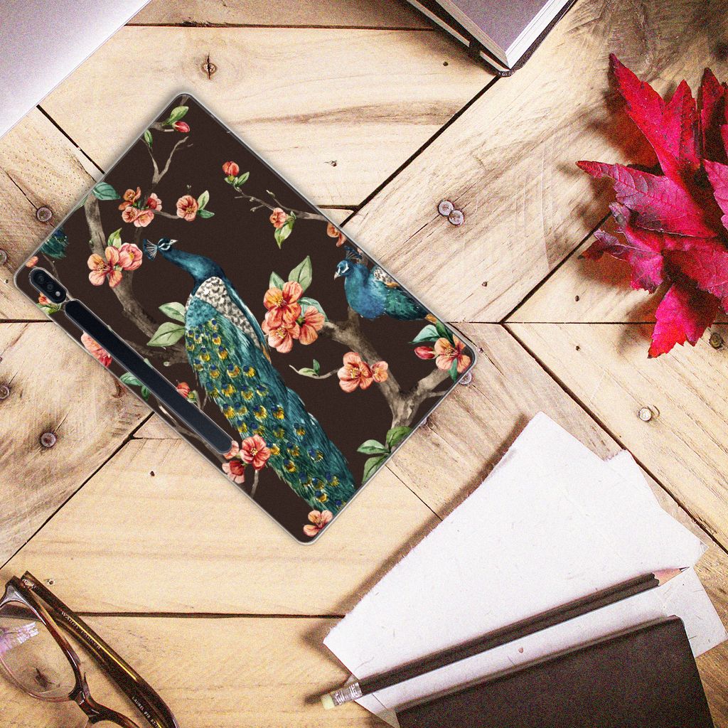 Op deze Samsung Galaxy Tab S7 Plus | S8 Plus Back Case kun jij zo trots als een pauw zijn. Met dit geweldige design hoesje met een Pauw met Bloemen erop kun jij je tablet voor zeer lange tijd beschermen. Deze case is zeer duurzaam en gemaakt van zeer elastisch materiaal. Je bent zeer flexibel met deze case met print van een pauw. Met dit hoesje met fleurige bloemen en trotse pauwen wordt jouw tablet er een stuk mooier op. De onderscheidende case heeft opstaande randen aan de voorzijde en wordt alleen aan de bovenzijde bedrukt. Zie jij liever jouw eigen huisdier op een tablethoesje? Dan adviseren we je zelf een hoesje te ontwerpen met onze unieke Phone Case Designer.