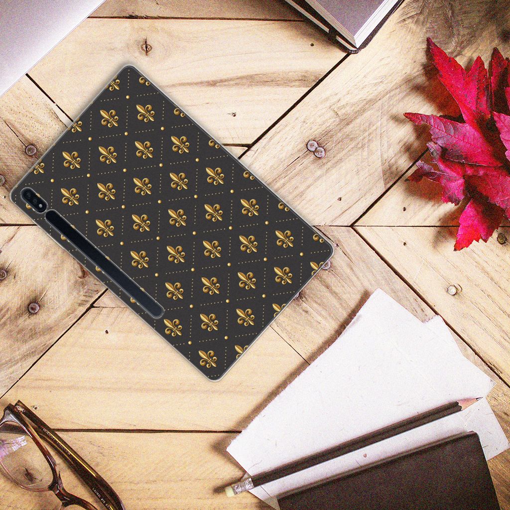 Hét symbool van het Franse koningshuis, de fleur-de-lis (ook fleur-de-lys of Franse lelie), mag natuurlijk niet ontbreken in onze collectie design hoesjes. De naam betekent letterlijk lelie-bloem. Deze Franse Lelie kunnen we op verschillende soorten cases printen, zoals een zeer praktische en onderscheidende tabletcase. Een Samsung Galaxy Tab S7 Plus | S8 Plus Hippe Hoes met Franse Lelie ziet er niet alleen ontzettend chique uit, het is dankzij onder meer het zeer flexibele materiaal zeer praktisch. Het is niet helemaal duidelijk welke bloem model heeft gestaan voor het Franse symbool. Wel is duidelijk dat de Franse lelie volledig tot wasdom komt op deze handige tabletcase. We bedrukken dit hoesje op het moment dat jij deze bestelt. Op de bovenzijde komt de Franse lelie te staan, de zijkanten blijven transparant.
