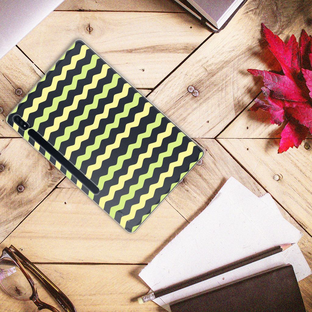Dit Waves Yellow design hoesje met licht groene en gele golven is speciaal ontworpen voor jouwtablet. We hebben een vleugje lichtgeel toegevoegd, zodat de case er een beetje spannender en leuker uitziet. Dit licht groene hoesje met licht groene golven ziet er oogstrelend uit. Het wordt in ons eigen magazijn bedrukt, in zeer goede kwaliteit inkt. Wij kunnen dus een zeer duurzaam hoesje met licht groene golven garanderen. Dit hele mooie Samsung Galaxy Tab S7 Plus | S8 Plus Hippe Hoes heeft vele extra’s. Is dit licht groene design hoesje je op het lijf geschreven? Grijp dan nu je kans. Deze tabletcase met lichtgroene golven wordt alleen aan de bovenkant bedrukt en is zeer flexibel. De randen van het hoesje met licht groene golven blijven transparant en worden niet bedrukt. Met dit hoesje past jouw tablet altijd in je tas.