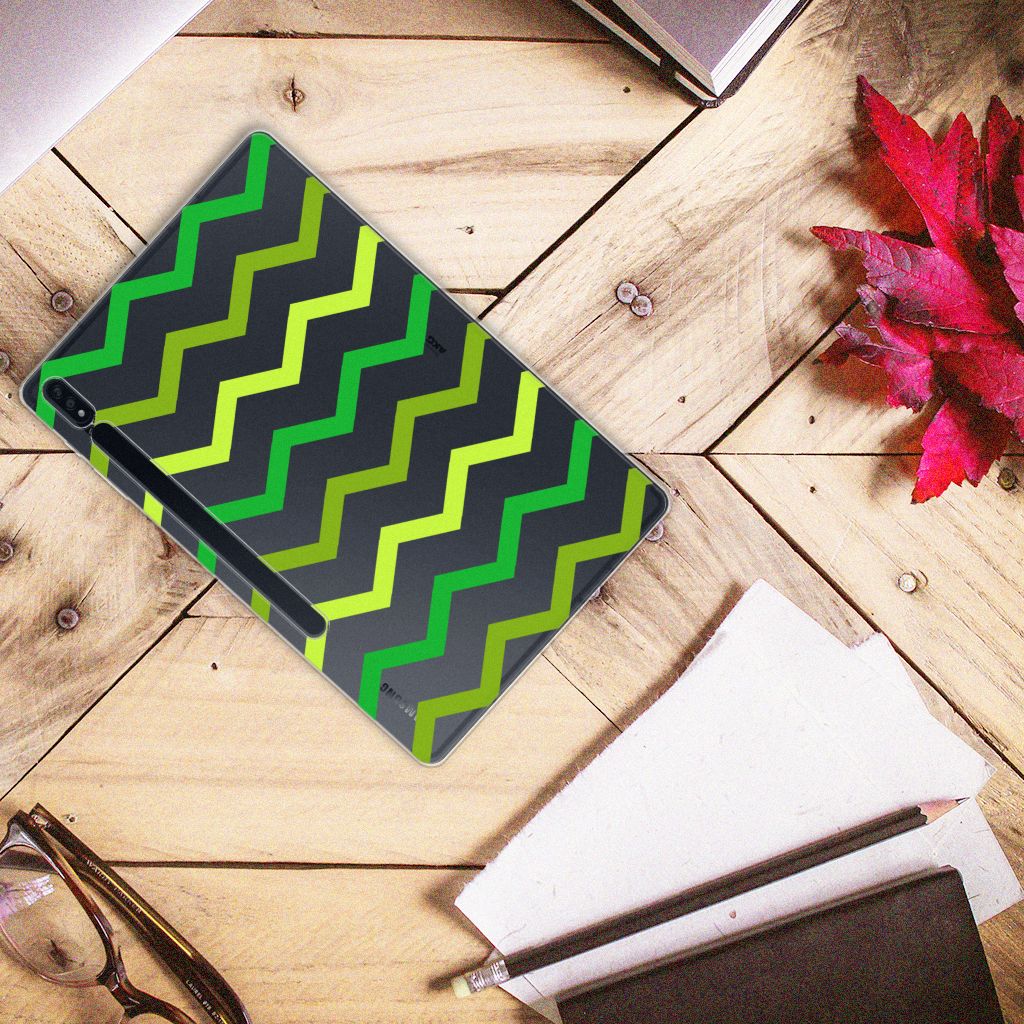 Dit zigzag groene design hoesje is speciaal ontworpen voor jou. We hebben bewust verschillende stijlen groen gebruikt, zodat er voldoende sprake is van variatie. Dit groene hoesje ziet er super strak uit. Dat kan ook niet anders als je weet dat onze designer zijn creativiteit heeft gebruikt. Hij schudt voortdurend nieuwe designs uit zijn mouw en dit zigzag groene hoesje is een van zijn fraaiste creaties. Een heel tof Samsung Galaxy Tab S7 Plus | S8 Plus Hippe Hoes, al zeggen we het zelf. Valt dit Zigzag Groen design hoesje goed bij jou? Bestel het dan vandaag nog en je hebt het morgen in huis. Het design staat op een tabletcase. Dit hoesje wordt alleen aan de bovenkant bedrukt en is zeer flexibel. De randen van het hoesje blijven transparant en worden niet bedrukt. Met dit hoesje past jouw tablet altijd in je tas.