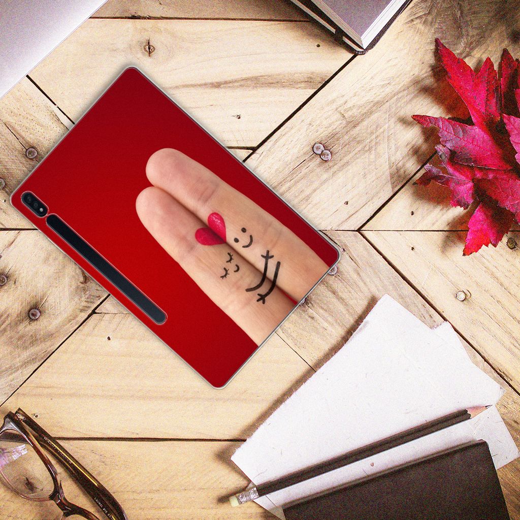 Mensen koesteren momenteel een enorme liefde voor hun tablet. Ze tonen in veel gevallen zelfs meer genegenheid voor hun tablet dan voor hun partner. Dag en nacht voelen we ons verbonden met onze tablet. Vandaar dat je het apparaat ook goed moet beschermen. Een zeer goede manier om dat te doen is met een TPU case. We hebben op een Samsung Galaxy Tab S7 Plus | S8 Plus Leuke Siliconen Hoes de Liefde afgebeeld. Hoe toepasselijk. Dit hoesje met print over liefde is gemaakt van zeer elastisch materiaal en heeft opstaande randen aan de voorzijde. Erg handig. Het scherm van jouw tablet zal bij een val de grond niet raken. De zijden worden niet bedrukt met de liefdevolle print. Dit geldt wel voor de achterzijde. Dit hoesje met een fraai symbool van liefde past altijd in je tas.