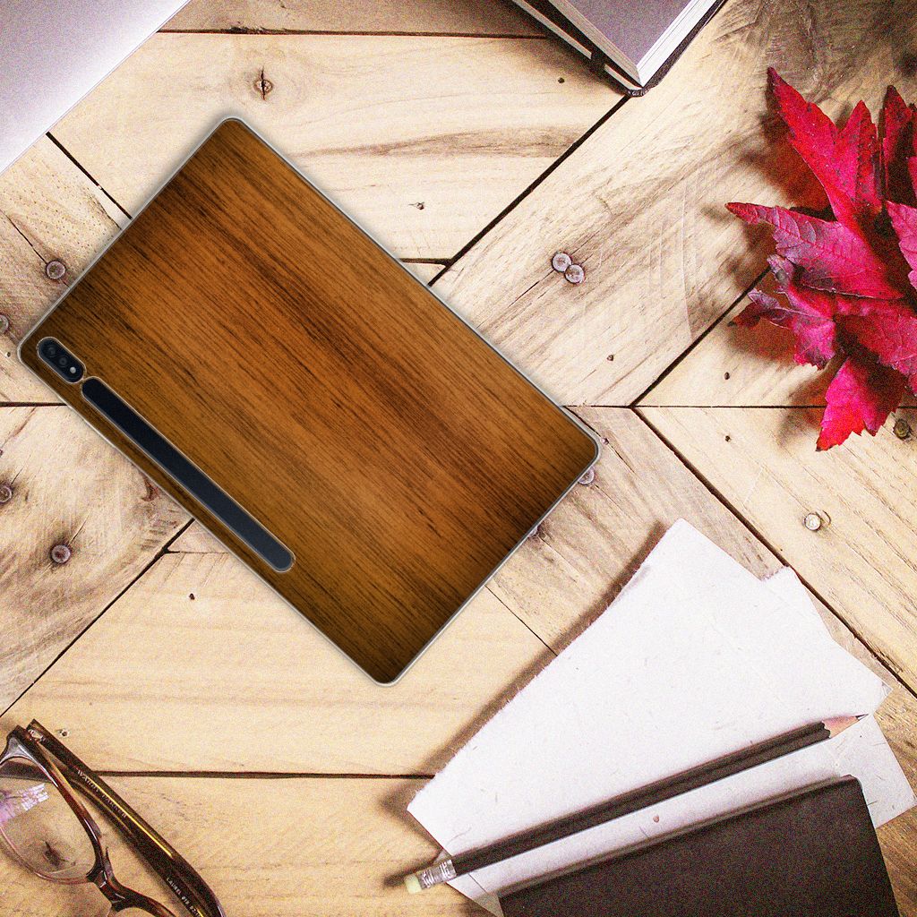 Raak je enthousiast van hout in de constructie van huizen, meubelen, vloeren, kozijnen, dakconstructies en voor de afwerking? Dan voel jij je uitstekend op je gemak met dit design hoesje met print van Donker Hout. Deze print staat op een TPU case voor de tablet, die jouw tablet vooral aan de achterkant en zijkanten zeer goed beschermt. Een Samsung Galaxy Tab S7 Plus | S8 Plus Silicone Tablet Hoes is zeer flexibel. Maar daar blijft het niet bij. Dit flexibele hoesje met houten print past altijd in je tas. Een belangrijke hoofdeigenschap van hout is duurzaamheid (bijvoorbeeld tegen weersinvloeden en schimmels). Dit design hoesje, waarvan de randen transparant zijn gebleven, is tevens zeer duurzaam.