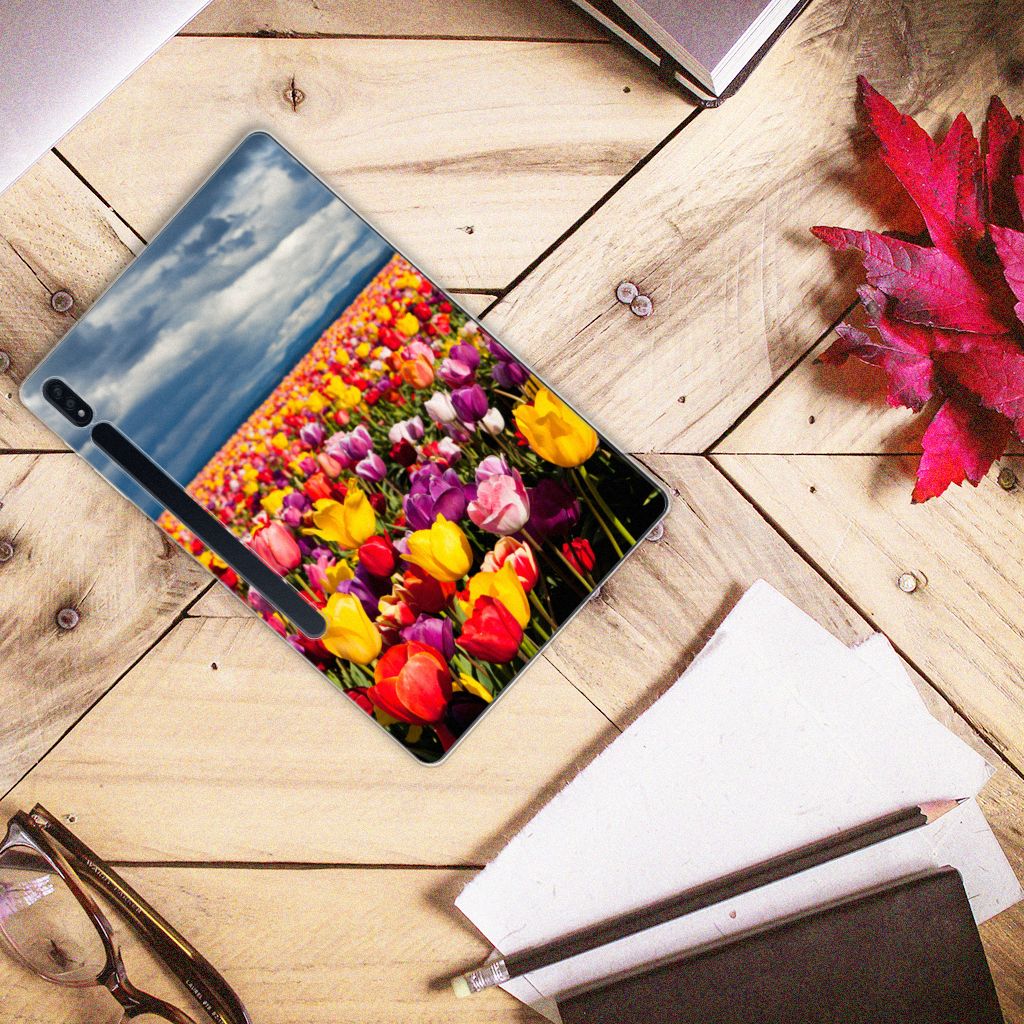 De tulp is een oer-Nederlandse bloem en heeft een lange geschiedenis. Deze Samsung Galaxy Tab S7 Plus | S8 Plus Siliconen Hoesje met Tulpen ziet er bijzonder kleurrijk uit. Dit fleurige tablethoesje geeft een bijzondere bescherming van jouw apparaat. Tulpen zijn ideaal voor een kleurrijk begin van het tuinseizoen. Iedereen wordt er vrolijk van om te zien hoe deze bloemen het voorjaar kleur geven en het begin van de warmere tijd van het jaar aankondigen. Dan kan het toch niet anders of jij wordt heel erg blij van deze tabletcase met tulpen? Dit hoesje is zeer flexibel en past altijd in je tas. Het materiaal is zeer elastisch en onbreekbaar. De case wordt niet aan alle zijden bedrukt met tulpen. De randen blijven transparant. Je kunt ook zelf een hoesje maken met daarop jouw favoriete bloem.