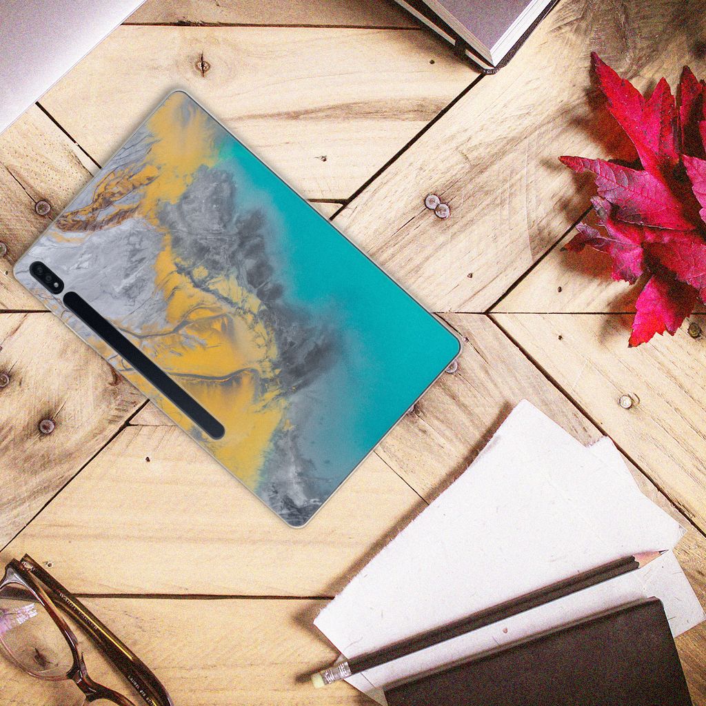 Deze Samsung Galaxy Tab S7 Plus | S8 Plus Tablet Back Cover met Marble Blue Gold is het waard om een blokje voor om te fietsen. Dit is echter helemaal niet nodig. Als je het hoesje met marmer blauw met goud nu bestelt heb je het supersnel in huis. Je kunt er bij wijze van spreken voor de brievenbus op blijven wachten. Je hebt diverse marmersoorten in veel verschillende kleuren. We hebben enkele mooie kleuren op design hoesjes gezet, zoals in dit geval marmer blauw met goud. Het marmer wordt bedrukt op de achterkant van de tpu case, die beschikt over alle nodige uitsparingen waardoor je alle knoppen en poorten van je tablet kunt bedienen. Verder is de case met marmer blauw met goud gemaakt van zeer flexibel materiaal. De rijkheid aan kleuren en variaties in afwerking is een fraaie eigenschap van marmer. Dit tpu hoesje met marmer blauw met goud heeft ook veel schitterende eigenschappen en is de ideale bescherming voor jouw tablet
