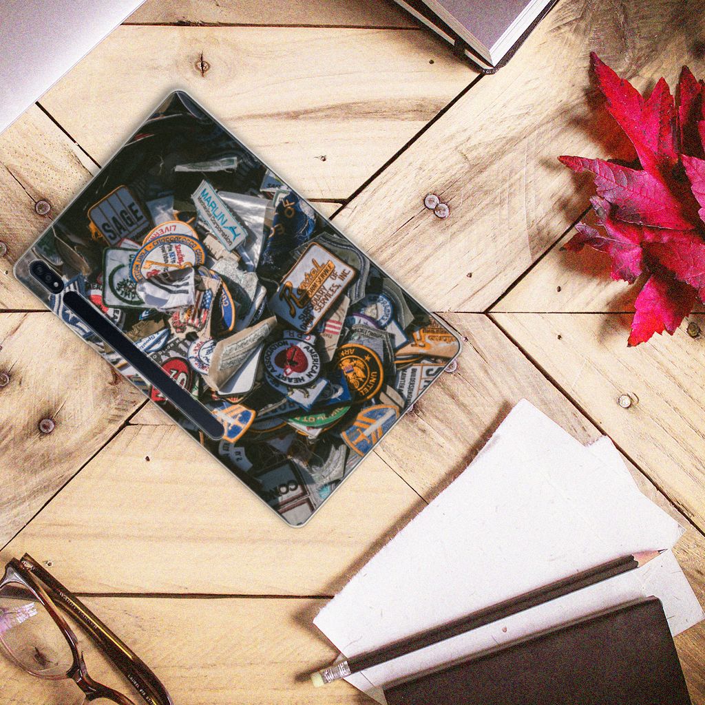 Het ontwerp op dit hoesje is met recht bijzonder te noemen. Het is het perfecte design voor de ultieme verzamelaar, vanwege de bonte collectie badges op het ontwerp. De afbeelding van de stoere strijkemblemen is origineel en leuk voor mensen die gek zijn op de Amerikaanse feel ervan. Met dit Tablet Backcover met foto voor je Samsung Galaxy Tab S7 Plus | S8 Plus val je zeker op! Maar het belangrijkste van alles: met deze hoes is je tablet altijd beschermd tegen krassen en beschadigingen. Deze hoes met badges-print is niet alleen super mooi en chique, maar ook nog eens zeer flexibel. Verder is de case schokabsorberend en heeft hij opstaande randen.