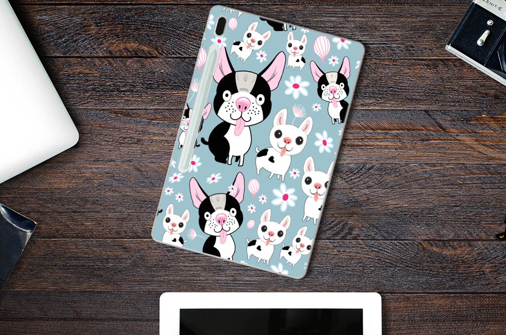 De Hondjes op deze Samsung Galaxy Tab S7FE Back Case ogen zeer aandoenlijk. Deze hondjes met zwart-witte vacht willen jou zelfs bijna in je armen springen, zo blij zijn ze dat ze op dit design zijn gezet. Het hoesje is een zeer flexibele tabletcase. Dit hoesje met zwarte en witte hondjes is niet alleen zeer praktisch vanwege de opstaande randen aan de voorzijde, maar beschermt je tablet ook nog eens zeer goed. Op de bovenkant van dit hoesje, die altijd in je tas past, staan de vrolijke hondjes. Veel Nederlanders hebben momenteel een hond als huisdier. Honden zijn dus erg populair. Net als dit hoesje, die wel eens het ideale cadeautje zou kunnen zijn voor jouw vriendin of dochter. De case blijft aan de zijkanten doorzichtig.