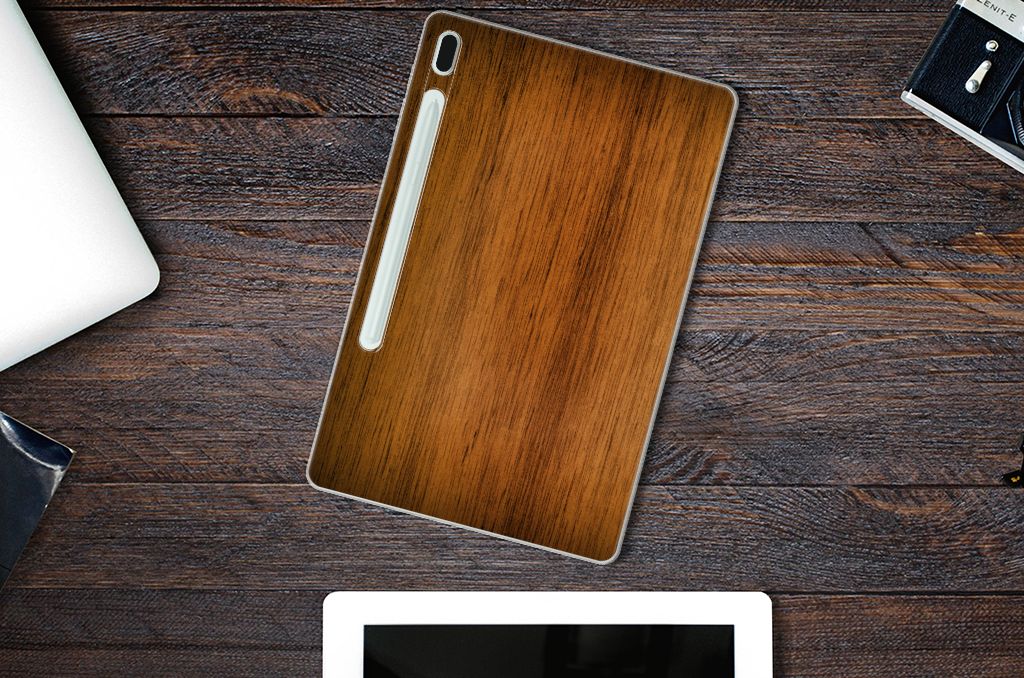 Raak je enthousiast van hout in de constructie van huizen, meubelen, vloeren, kozijnen, dakconstructies en voor de afwerking? Dan voel jij je uitstekend op je gemak met dit design hoesje met print van Donker Hout. Deze print staat op een TPU case voor de tablet, die jouw tablet vooral aan de achterkant en zijkanten zeer goed beschermt. Een Samsung Galaxy Tab S7FE Silicone Tablet Hoes is zeer flexibel. Maar daar blijft het niet bij. Dit flexibele hoesje met houten print past altijd in je tas. Een belangrijke hoofdeigenschap van hout is duurzaamheid (bijvoorbeeld tegen weersinvloeden en schimmels). Dit design hoesje, waarvan de randen transparant zijn gebleven, is tevens zeer duurzaam.