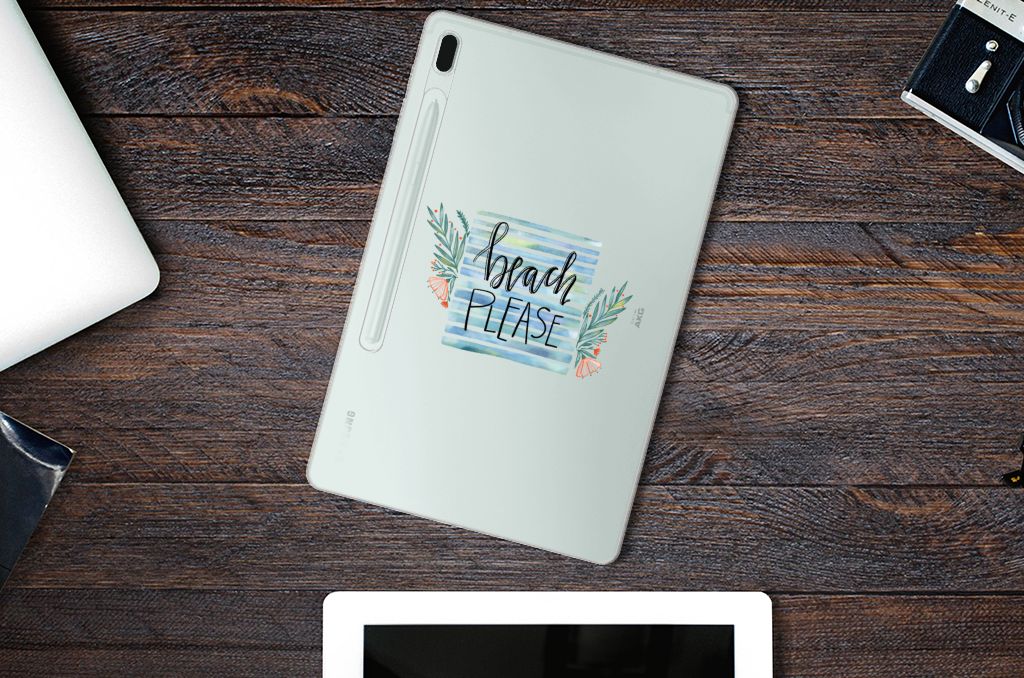 Dit design is perfect voor iedereen die geen genoeg kan krijgen van zon, zee en strand. Met dit Tablet Back Cover voor de Samsung Galaxy Tab S7FE draag je de zomer altijd een beetje bij je. Dankzij de tekst ‘Beach Please’ ziet iedereen dat je een echte zonaanbidder bent. Het boho beach-ontwerp is vrolijk dankzij de subtiele bloemen en de leuke kleurtjes. De hoes voor de tablet is gemaakt van TPU, een flexibel maar heel erg sterk plastic dat niet kapot te krijgen is. We adviseren om dit type hoesje te combineren met een screenprotector, zodat je scherm ook goed beschermd is tegen krassen en beschadigingen.
