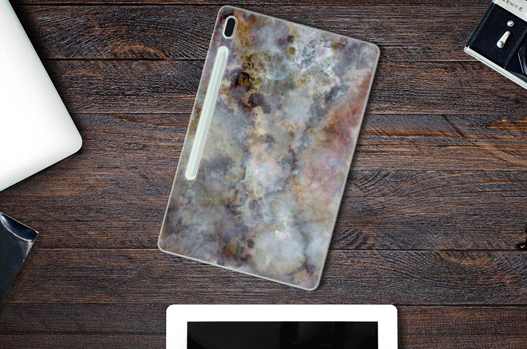 Deze Samsung Galaxy Tab S7FE Tablet Back Cover met Deze Samsung Galaxy Tab S7FE Tablet Back Cover met marmer grijs is geen doorsnee product, maar onderscheidend in alle opzichten. Marmer is een zeer gewaardeerd bouwmateriaal, dit gaat zelfs terug tot de Romeinen, waardoor dit ook een symbolische waarde heeft op dit hoesje. Het tablethoesje in een grijze kleur beschikt over alle uitsparingen die je nodig hebt en is gemaakt van zeer flexibel en schokabsorberend materiaal. De case wordt aan de achterzijde bedrukt met grijze marmer. Marmer doet het goed op onze tablethoesjes. We hebben deze in zeer veel verschillende kleuren in ons assortiment zitten. Je kunt het hoesje met grijze marmer ook gebruiken als basis voor je eigen ontwerp. Behalve het grijs kun je dan nog vele andere kleuren toevoegen. Om nog maar te zwijgen over die mooie foto’s en teksten van jezelf.