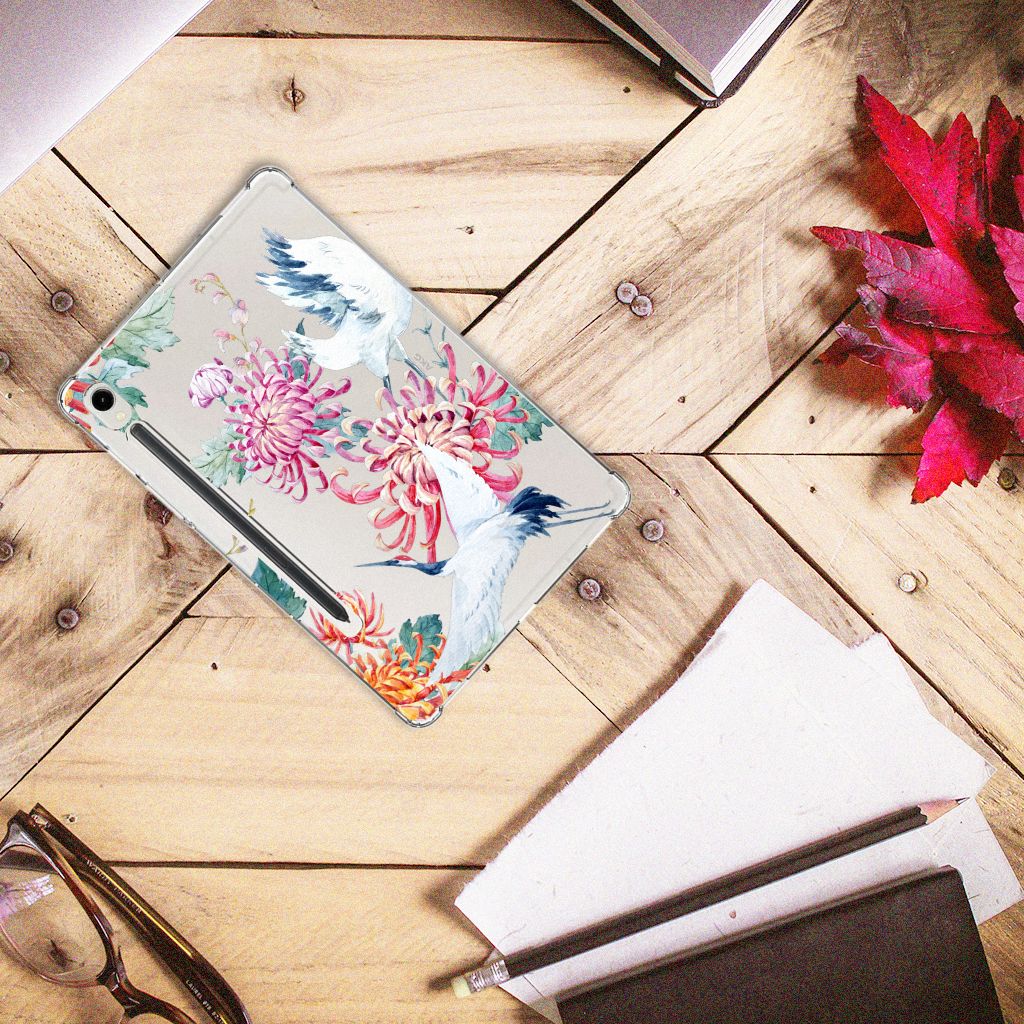 Verspreid over de hele wereld leven 19 soorten ooievaars. De spanwijdte – dat is de afstand van vleugeltip tot vleugeltip – van een volwassen ooievaar kan 2.50 meter bedragen. De gebieden waarin de ooievaar broedt, liggen in heel Europa, het Midden-Oosten, West- en Centraal-Azië en Noordwest-Afrika. Het ideale leefgebied van de ooievaar is een half open tot open landschap met veel afwisseling in grondgebruik en begroeiing. De begroeiing op dit design hoesje, in allerlei verschillende kleuren, zal niet alleen voor de ooievaars fraai zijn. Jij zult er zelf ook heel vrolijk van worden. Het in het oog springende design staat op een Back Case. Dit tablethoesje wordt alleen aan de bovenkant bedrukt en is zeer flexibel. De randen van het hoesje blijven transparant en worden niet bedrukt. Met dit hoesje past jouw Samsung Galaxy Tab S9 altijd in je tas.