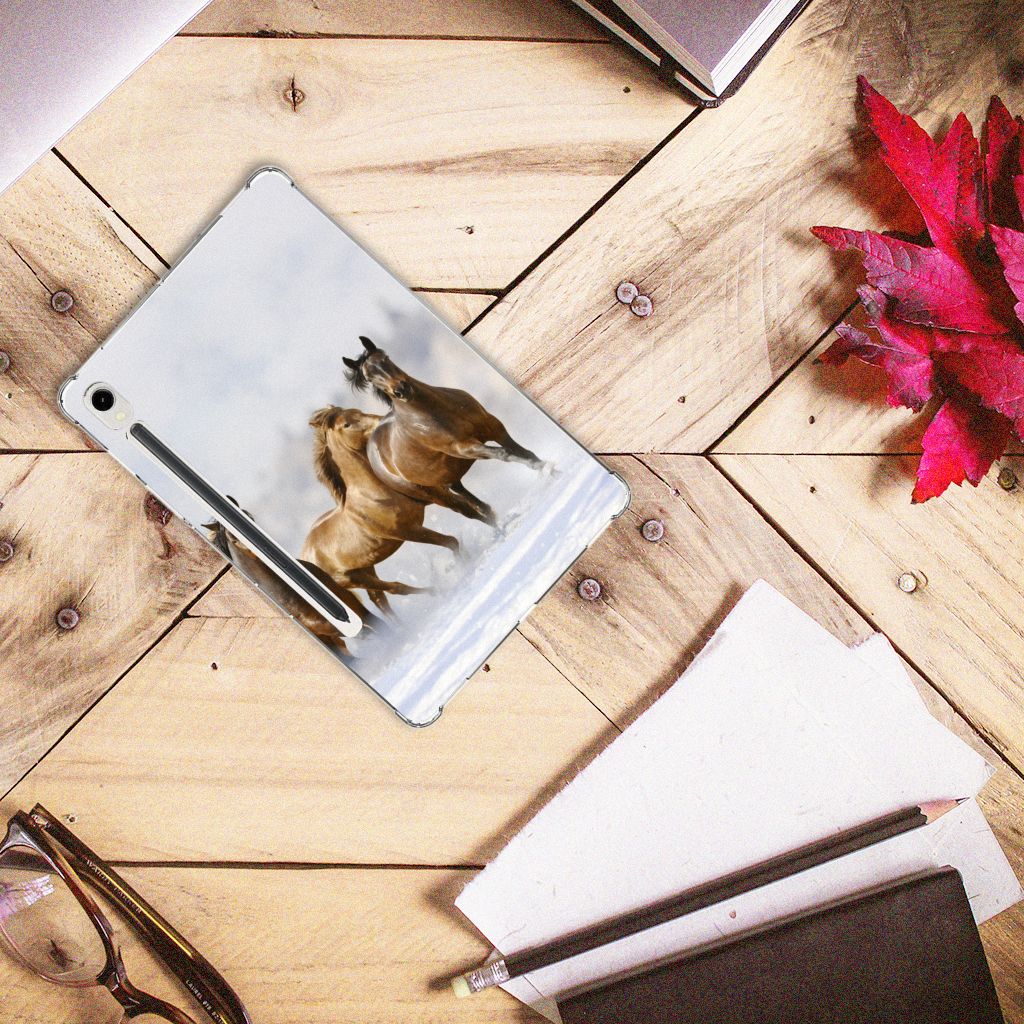 Voor de paardenliefhebbers onder ons hebben we onze collectie uitgebreid met dit design hoesje met print van paarden. Vroeger hield de mens vooral werkpaarden, inmiddels hebben we vriendschap gesloten met het paard. Vandaar dat het ook een favoriet dier is op onze tablethoesjes, zoals deze tabletcase. Een Back Case voor de Samsung Galaxy Tab S9 met Paarden is niet alleen super mooi en chique, maar ook nog eens zeer flexibel. Verder is de case schokabsorberend en heeft het opstaande randen. Zie je liever je eigen paard terug op een hoesje. Dat kan! Door zelf een uniek hoesje te ontwerpen, met eigen foto’s en teksten. Dit hoesje wordt aan de bovenzijde bedrukt, de zijkanten blijven transparant.
