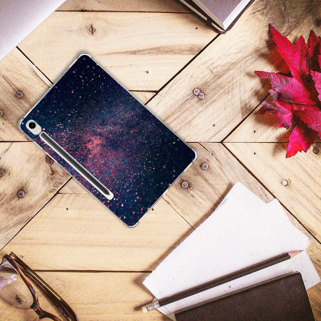 Je waant je in de zevende hemel met dit kunstzinnige, glitterachtige design hoesje met paarse en blauwe kleuren tegen een inktzwarte achtergrond. Het tablethoesje heeft ook een wat science fiction achtige allure. Met deze design Stars case zul je zeker opvallen. Als dit je bedoeling is, bestel dat snel dit waanzinnig mooie product voor je Samsung Galaxy Tab S9. Het tablethoesje is van alle gemakken voorzien en combineert een hele fraaie uitstraling met maximaal comfort. Bovendien is het gemaakt van zeer stevig en flexibel materiaal. Het unieke design, door B2C Telecom ontworpen, staat op een Back Cover. Dit hoesje wordt alleen aan de bovenkant bedrukt en is zeer flexibel. De randen van het hoesje blijven transparant en worden niet bedrukt. Met dit hoesje past jouw tablet altijd in je tas.