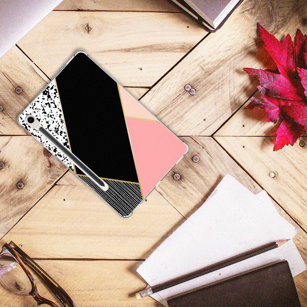 Samsung Galaxy Tab S9 Print Back Cover Zwart Roze Vormen