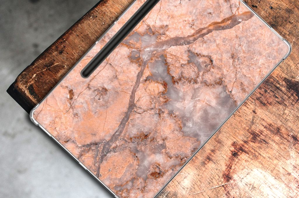 Dit design hoesje met Marmer Oranje is zeer geschikt voor jouw kostbare tablet. Vanwege zijn prachtige lichtval en vastheid is marmer een zeer gewild bouwmateriaal. Wij kunnen inmiddels concluderen dat dit hoesje met oranje marmer ook zeer gewild is. Beloon jezelf en je tablet met dit hele mooie Samsung Galaxy Tab S9 Plus Tablet Back Cover. Naast het oranje marmer zijn er de diverse marmersoorten in een ruim kleurenpallet te krijgen. Deze case met marmer in oranje wordt aan de achterzijde bedrukt. Dit hoesje beschikt over opstaande randen en is gemaakt van onbreekbaar materiaal. De randen van de case in oranje marmer blijven transparant. Wij hebben onze designer veel vrijheid gegeven met het ontwerpen dit mooie hoesje. Het resultaat zie je terug in deze tpu case met oranje marmer, dat een hele goede bescherming is voor jouw tablet. Des te mooi dat wij voor variatie hebben gekozen door een hoesje met oranje marmer aan de bieden.