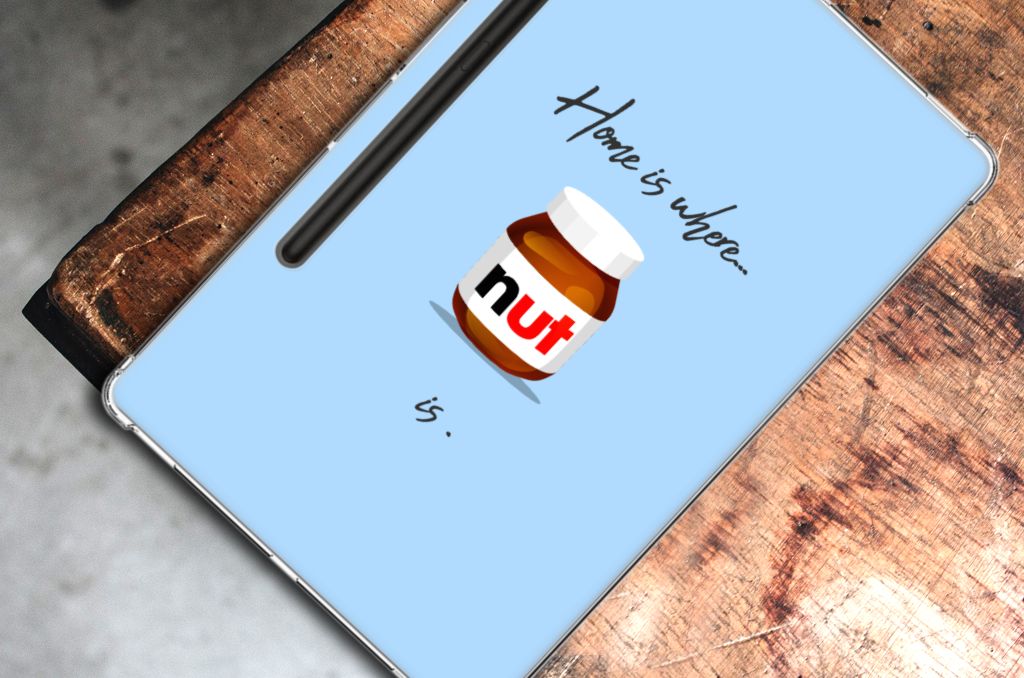 Ben je liefhebber van chocoladepasta, dan is dit het perfecte Samsung Galaxy Tab S9 Plus NutTablet Cover voor jou. De chocoladepasta is enorm populair, dus is het niet zo heel gek dat je een ‘Nut Home’ tabletcase in een blauwe kleur aantreft in ons assortiment design hoesjes met illustraties. Dit hoesje is zeer flexibel en past altijd in je tas. Alleen de bovenkant van dit hoesje wordt door ons bedrukt in blauwe kleur met de pasta, op zeer duurzame manier. Mensen die houden van de bekendste pasta van het moment, kiezen voor deze tabletcase.