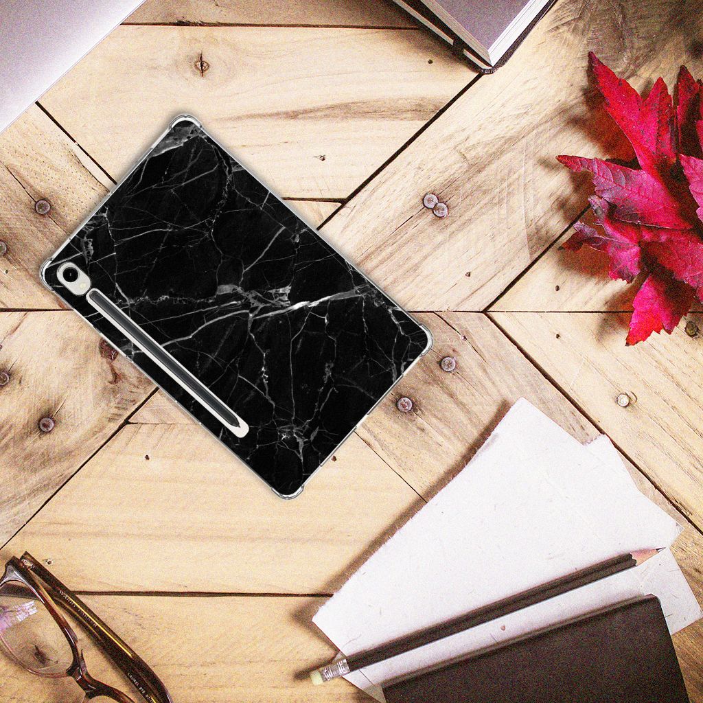 Dit design hoesje met Marmer Zwart is voor de artistieke personen onder ons. De Grieken en Romeinen wisten het materiaal al te waarderen door het in de bouw toe te passen. Naast het witte marmer met haar zacht grijze geaderde belijning zijn de diverse soorten in een gevarieerd kleurenpallet te krijgen. We hebben mooie kleuren op design hoesjes gezet, zoals in dit geval zwart marmer. Dit is een Samsung Galaxy Tab S9 Tablet Back Cover met marmer in bruine kleur. Het marmer wordt bedrukt op de voorkant van een tpu hoesje, die beschikt over opstaande randen aan de voorkant en heel goed combineert met een screenprotector van glas of van folie. De rijkdom aan kleuren en varianties in afwerking geeft ontwerpers de vrijheid om met marmer hele mooie architectonische projecten te realiseren. Wij hebben onze designer tevens veel vrijheid gegeven. Het resultaat zie je terug in deze tpu case met zwart marmer, die jouw tablet goed beschermt. De zijkanten van de case worden niet bedrukt met het zwarte marmer.