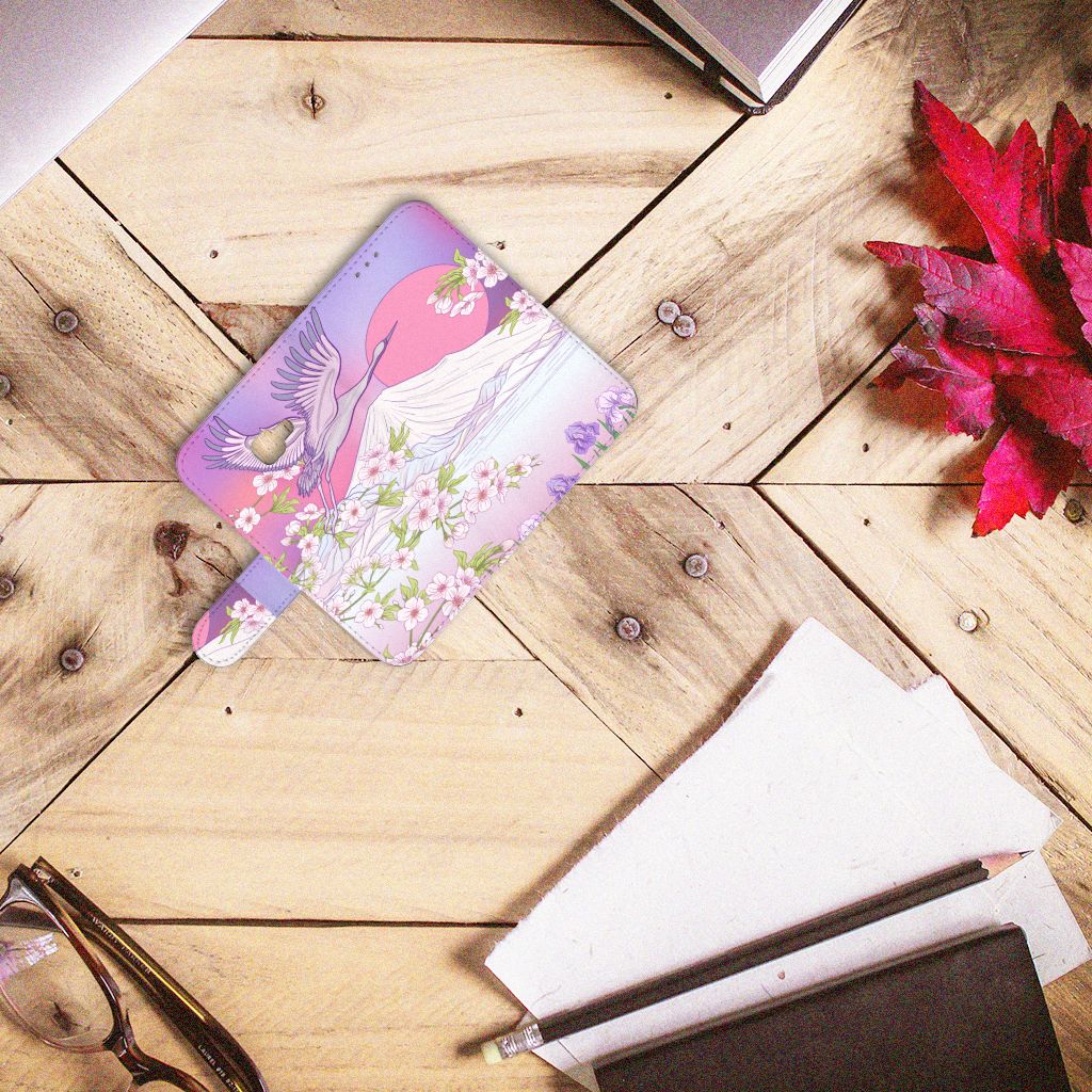 Met dit opvallende en kleurrijke Samsung Galaxy Xcover 4 | Xcover 4s Telefoonhoesje met Pasjes met Bird Flying design blijft jouw toestel in uitzonderlijke staat. Een ooievaar fleurt al sinds mensenheugenis dorpen en steden op en doet dit ook met jouw boekhoesje. Het design hoesje met deze reigerachtige vogel in roze en paarse kleuren is een zeer goede bescherming voor je telefoon. Het spetterende boekhoesje met opvallende ooievaar beschermt jouw telefoon aan alle zijden en beschikt over verschillende opbergvakjes voor pasjes en briefgeld. De roze met paarse case sluit perfect af met het lipje aan de buitenkant. De houder aan de binnenzijde van het schitterende boekhoesje is van TPU. Dit is ook nog eens zeer flexibel materiaal. Het pu leer aan de buitenkant oogt zeer chique. Kijk voor andere dieren op een design hoesje binnen deze fraaie collectie. Ook kun je zelf een hoesje ontwerpen met je favoriete huisdier.