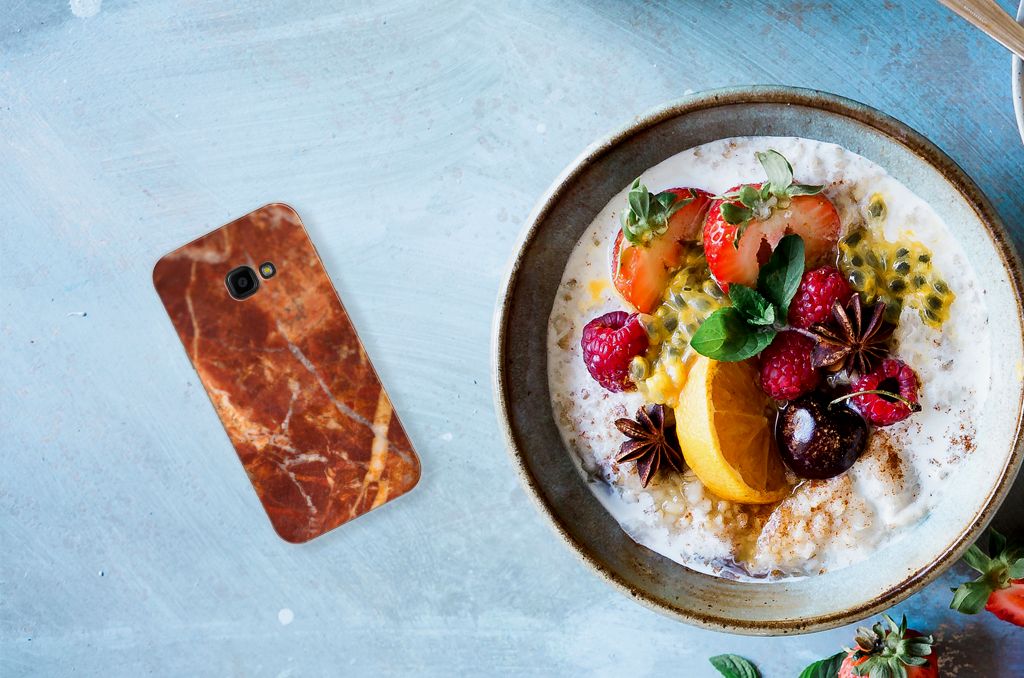 Dit design hoesje met Marmer Bruin is voor de artistieke personen onder ons. De Grieken en Romeinen wisten het al te waarderen door het als bouw- en bekledingsmateriaal toe te passen. Naast het witte Carrara marmer met haar zacht grijze geaderde belijning zijn de diverse soorten in een ruim kleurenpallet te krijgen. We hebben verschillende kleuren op design hoesjes gezet, zoals in dit geval bruin marmer. Dit is een Samsung Galaxy Xcover 4 | Xcover 4s TPU Siliconen Hoesje met marmer in bruine kleur. Het marmer wordt bedrukt op de voorkant van een tpu case, die beschikt over opstaande randen aan de voorkant en heel goed combineert met een screenprotector. De rijkheid aan kleuren en varianties in afwerking geeft ontwerpers de vrijheid om met marmer hele mooie architectonische projecten te realiseren. Wij hebben onze designer ook veel vrijheid gegeven. Het resultaat zie je terug in deze tpu case met bruin marmer, die jouw smartphone goed beschermt. De zijkanten van de case worden niet bedrukt met marmer.