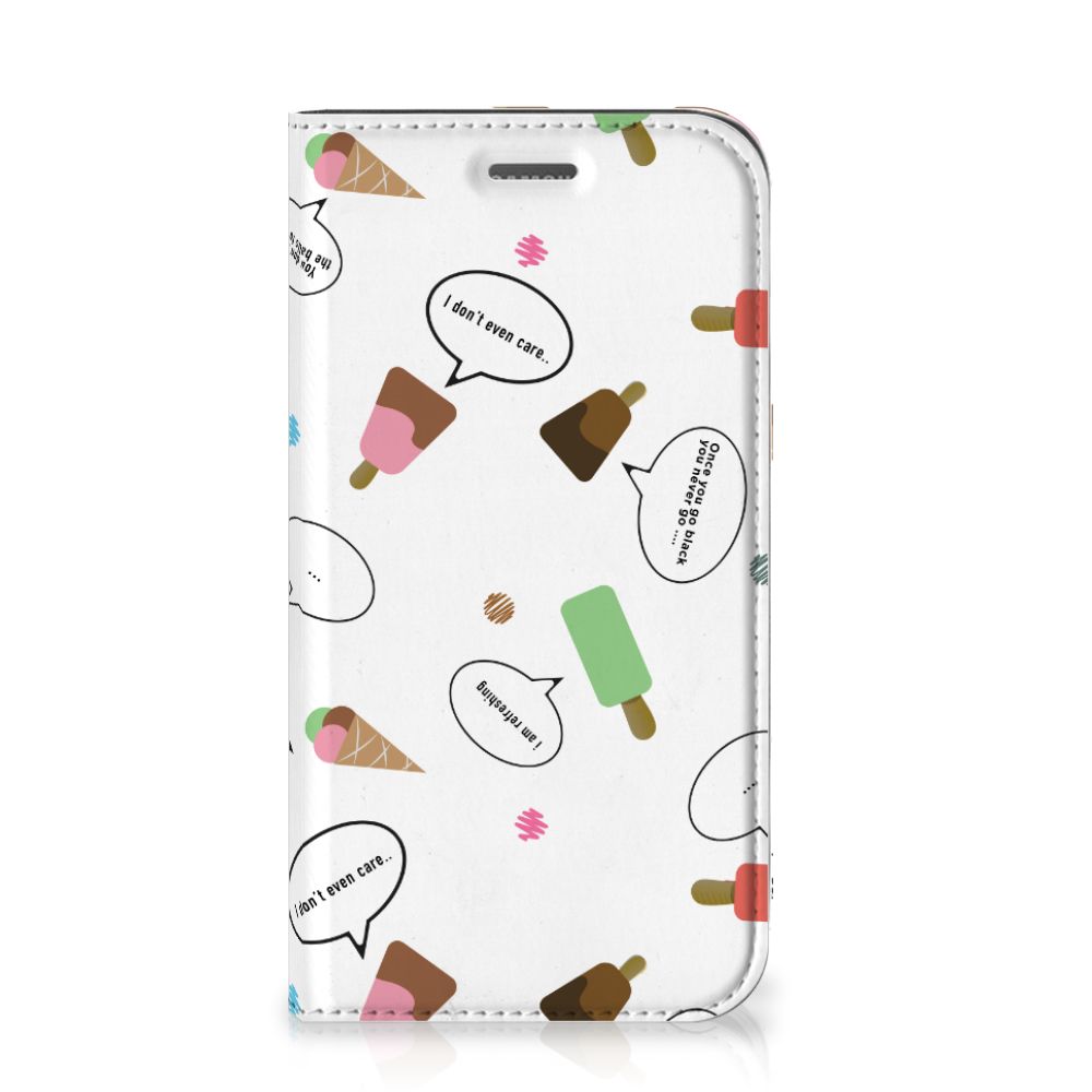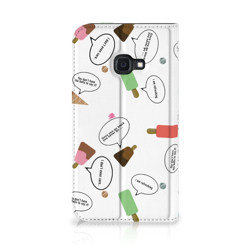 Van deze vrolijke Samsung Galaxy Xcover 4s Flip Style Cover met daarop verschillende soorten ijsjes met tekstwolkjes krijg je sowieso een vrij en zomers gevoel. De zomer komt naar je toe met deze print van ijsjes met tekstwolkjes. Ben je op het strand, dan ontbreekt een lekker ijsje natuurlijk niet. Net zoals je je smartphone bij de hand hebt, met daaromheen een design hoesje met bijzondere ijsjes en tekstwolkjes. Jouw telefoon kan dan de bescherming in de vorm van een stand case met ijsjes zeer goed gebruiken. Alle zijden van dit hoesje worden bedrukt met ijsjes en dankzij de speciale standaard is het erg prettig om filmpjes te bekijken. De case wordt aan de binnenzijde met een magneet afgesloten en de houder aan de binnenzijde is van TPU. Onder alle weersomstandigheden zal deze case met 1 opbergvakje en ijsjes perfect functioneren, ook op het strand met een ijsje in je hand.