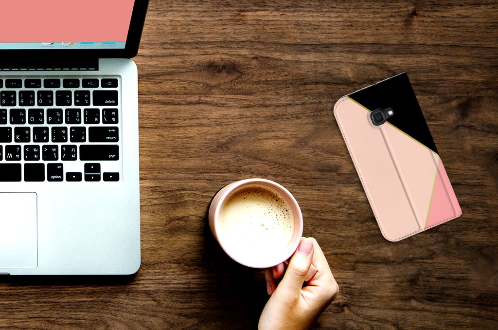 - Met een hoesje met roze, zwarte en witte vlakken op alle zijden blijft jouw telefoon in tact.
