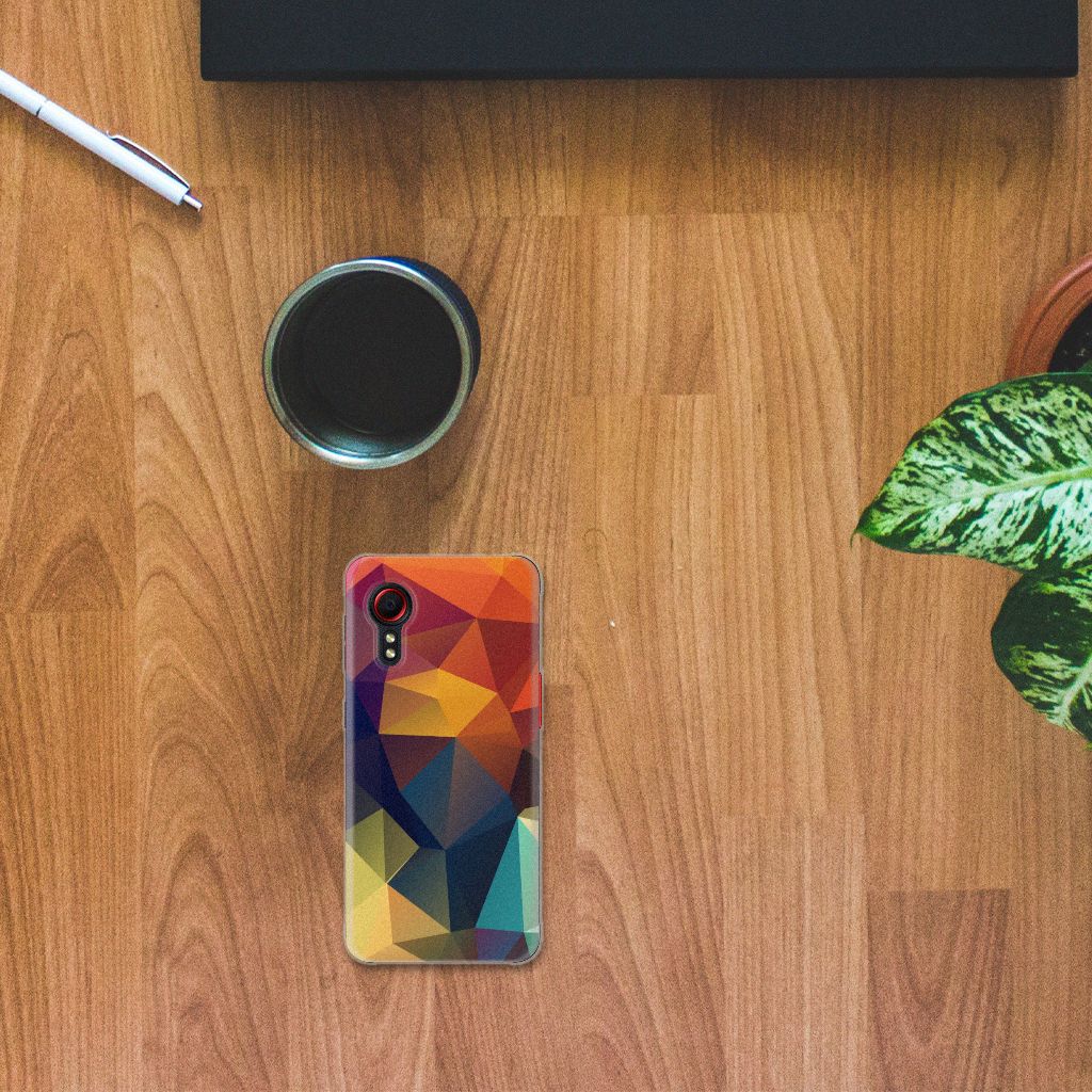 Veelkleurige driehoeken die samen eindeloze asymmetrische patronen lijken te vormen. Het is het abstracte schouwspel dat op dit fraaie hoesje voor je Samsung Galaxy Xcover 5 direct de aandacht trekt noemen we voor het gemak trekt noemen we voor het gemak Polygon Color. De een ziet er een berglandschap in, de ander piramides. Wat zie jij erin? Zeker is in elk geval dat de aanblik van dit fascinerende ontwerp je niet snel gaat vervelen. Het kleurige spel van lijnen en vlakken blijft eindeloos boeien en geeft jouw TPU Hoesje een hippe en kunstzinnige uitstraling. De kracht die het lijnenspel uitstraalt, komt ook terug in het hoesje zelf. Dit hoesje wordt alleen aan de bovenkant bedrukt en is zeer flexibel. De randen van het hoesje blijven transparant. Wat wil je nog meer?