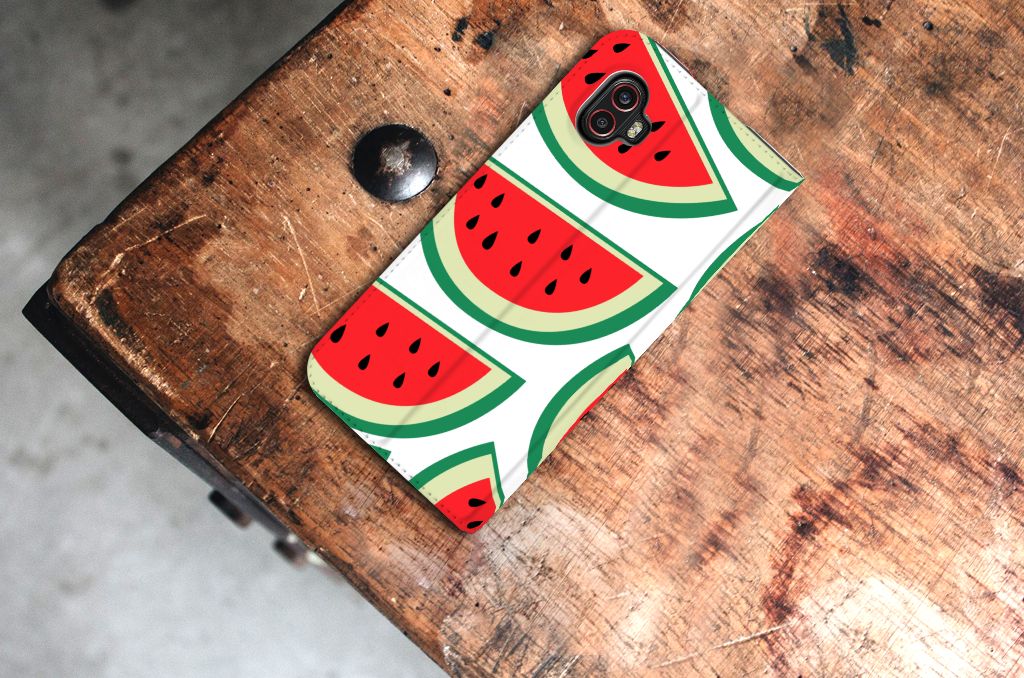 Watermeloenen zijn uitstekende dorstlessers, misschien dat je daarom juist in de zomermaanden extra enthousiast raakt van dit design hoesje Watermelons. Jij blijft gezond als je zo nu en dan een watermeloen neemt, jouw smartphone blijft in tact als je er deze Samsung Galaxy Xcover 6 Pro Flip Style Cover omheen doet. De stand case beschermt jouw telefoon aan alle kanten en beschikt over een 1 opbergvakje en een speciale standaard. Het hoesje wordt afgesloten met een magneet aan de binnenzijde. De houder aan de binnenzijde is van TPU. Je kunt ook kiezen voor andere soorten fruit op je hoesje. Kijk maar eens naar onze andere design hoesjes op onze website.