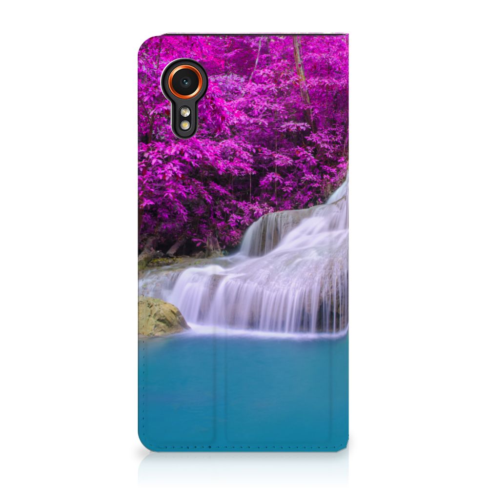Van een waterval kun je een heel rustig gevoel krijgen, zeker als die op een Samsung Galaxy Xcover 7 Book Cover staat dat jouw smartphone perfect beschermt tegen allerlei vormen van schade zoals krassen, barsten en scheuren. In de buurt van een waterval ben je tijdens warme zomerdagen niet alleen verzekerd van aangename verkoeling, het is ook een bijzonder rustgevende ervaring. Uit onderzoek blijkt zelfs dat watervallen een helend effect hebben op allerlei aandoeningen. Extra bijzonderheid aan de stand case vormen de paarse bossen op de achtergrond. Dit smartphonehoesje beschermt jouw telefoon aan alle zijden en beschikt over een opbergvakje voor pasjes en briefgeld. De case sluit perfect af dankzij de magneten van binnen. De houder aan de binnenzijde is van TPU. Alle zijden van het hoesje worden bedrukt. Een mooiere waterval met paarse achtergrond kom je op geen enkel ander hoesje tegen.