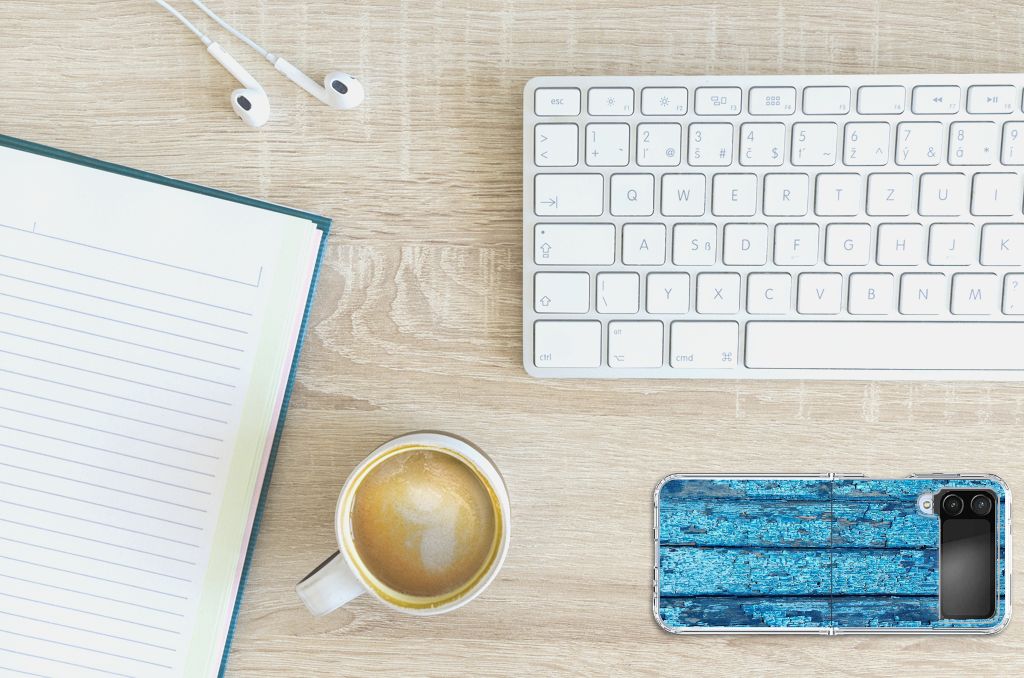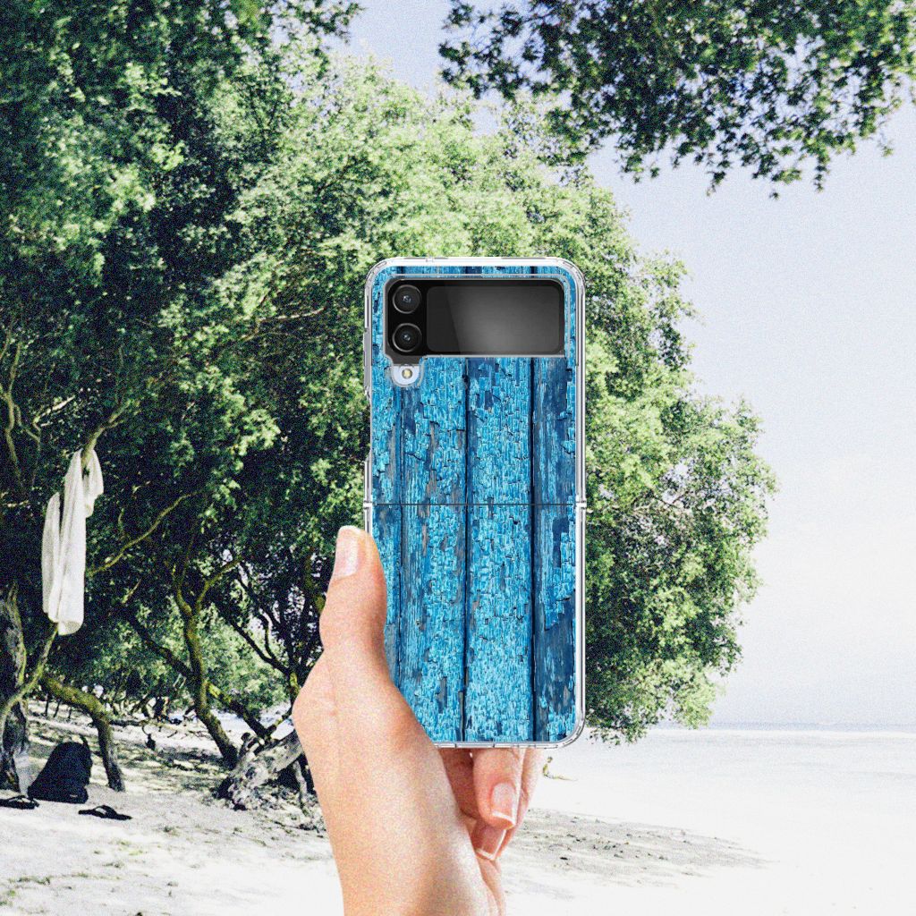 Samsung Galaxy Z Flip 4 Bumper Hoesje Wood Blue