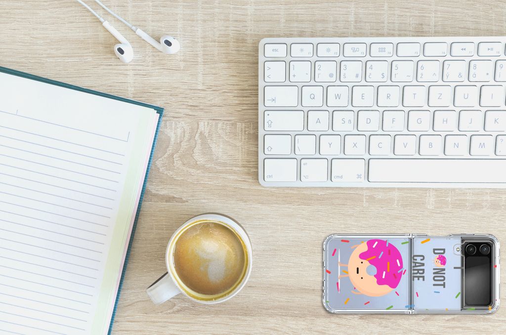 De cartoon met Donut op dit design hoesje geeft jouw smartphone een grappige en vrolijke uitstraling. De Samsung Galaxy Z Flip 4 Siliconen Case zorgt ervoor dat je je schouders op zult halen als je telefoon een keer op de grond valt. Omdat er geen schade zal optreden kun jij je weg weer heel makkelijk vervolgen. De grappige Donut Care tpu case is nergens anders te krijgen. Het design is namelijk van de hand van onze eigen ontwerper. Daarnaast zal de case jouw smartphone goed beschermen. Een Donut Care tpu case is een zeer flexibel hoesje. Dit komt onder andere door het elastische en onbreekbare materiaal. Verder is de case zeer praktisch. Wat denk je bijvoorbeeld van de opstaande randen aan de voorkant. Verder beschikt de case ook nog eens over alle noodzakelijke uitsparingen. Ook kun je zelf je eigen unieke hoesje ontwerpen, met eigen cartoons, foto’s en teksten. Een Donut Care tpu case wordt alleen aan de bovenkant bedrukt. De randen blijven volledig doorzichtig.