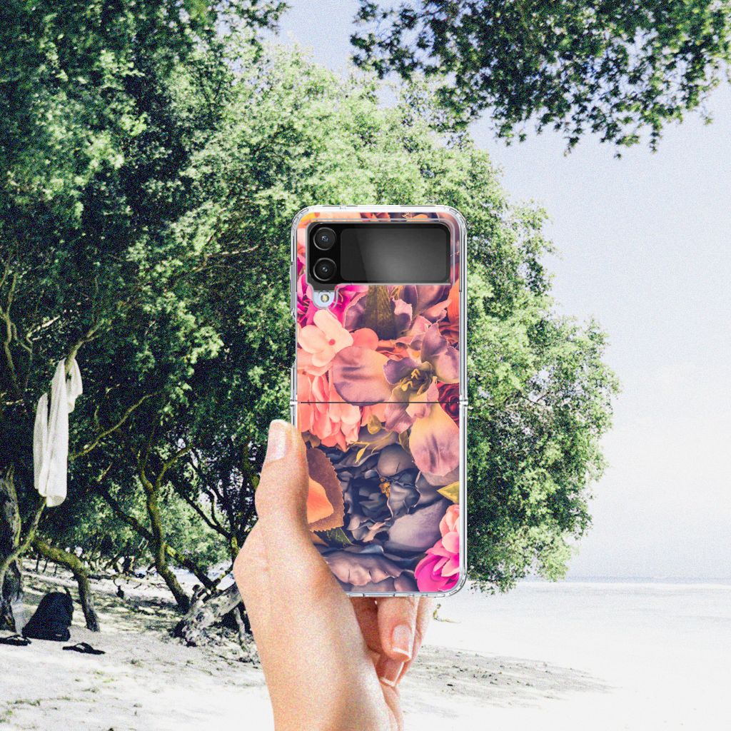 Dit Bosje Bloemen doet een mens en zijn smartphone goed. De oranje, paarse en roze bloemen op deze Samsung Galaxy Z Flip 4 TPU Case geven jouw smartphone een zeer sierlijke uitstraling. Je wordt er ook meteen vrolijker van als je aan het appen, mailen of aan het bellen bent. Valt dan je telefoon op de grond, dan zal er dankzij de tpu case met oranje, paarse en roze bloemen geen schade ontstaan. Helemaal niet als je er een screenprotector bij hebt gekocht. Onze tpu cases met oranje, paarse en roze bloemen zien er zeer prettig uit en zijn heel praktisch, getuige onder meer de opstaande randen en het flexibele materiaal. Alleen de achterkant van de tpu case wordt bedrukt met oranje, paarse en roze bloemen. Op deze tpu case is het ook mogelijk je eigen ontwerp te zetten. In no time ontwerp je zelf een tpu case met daarop foto’s van jouw favoriete bloemen.