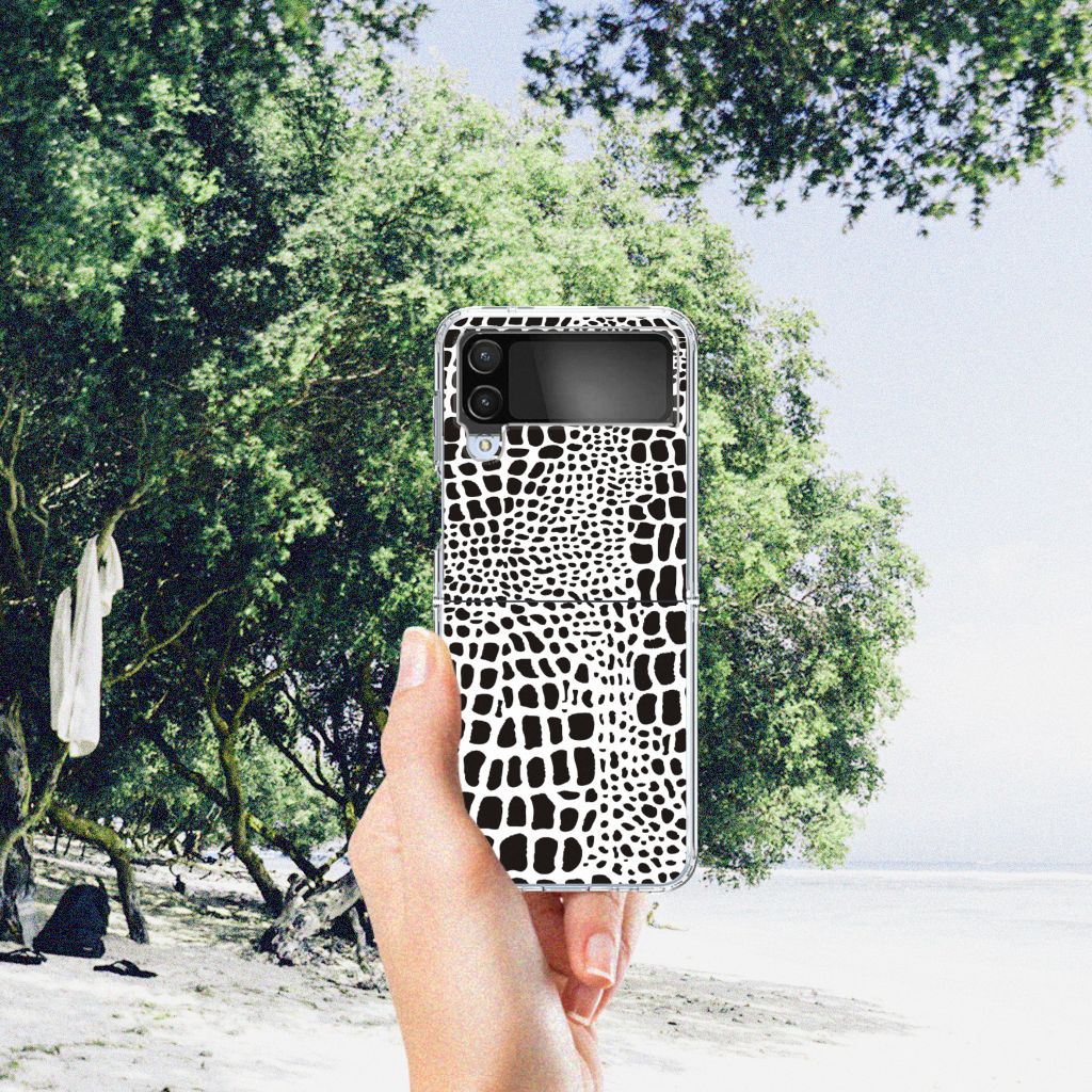 Deze tpu case met zwarte en witte Slangenprint kunnen wij zeer exclusief noemen. Zeker als je er nog een bijzondere tekst van jezelf aan toevoegt, zoals je eigen naam in een sierletter. Jouw tpu case krijgt dan een persoonlijke uitstraling, net nog een beetje specialer dan dit hoesje met zwarte en witte slangenprint. Wat niets afdoet van de exclusiviteit van deze tpu case met zwarte en witte slangenprint. Ben jij toe aan een stoer en opvallend Samsung Galaxy Z Flip 4 TPU Hoesje? Pak dan dit design met print van slangenhuid als basis. Het tpu hoesje is zeer flexibel en wordt alleen aan de bovenzijde bedrukt. De randen van dit flexibele hoesje blijven doorzichtig. Jij bent ervan verzekerd dat jouw smartphone tegen een stootje kan met dit tpu hoesje met zwarte en witte slangenprint.