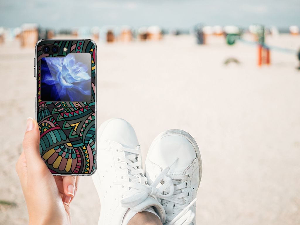 Voor de mensen die een beetje artistiek zijn, kunnen we een onderscheidende Samsung Galaxy Z Flip 5 TPU bumper bedrukken met kleuren in een soort retro stijl. Je krijgt bijna een beetje een nostalgisch gevoel bij dit kunstzinnige design hoesje. De opdruk Aztec komt op de bovenzijde van de TPU case te staan, die zeer flexibel en praktisch is. Dit leuke hoesje in verschillende kleuren gaat nooit verloren en is net zo duurzaam als het gave patroon. De print wordt in ons eigen magazijn bedrukt. De case heeft alle nodige uitsparingen, zodat je alle knoppen en poorten simpel kunt bedienen. Het smartphonehoesje beschermt jouw telefoon vooral aan de achterzijde en zijkanten. Deze zijkanten worden overigens niet bedrukt. Met dit leuke hoesje in opvallende kleuren oogt jouw smartphone zeer modern maar grijp je toch een beetje terug naar het verleden.