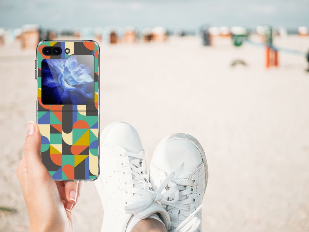 Voor de mensen die een beetje artistiek zijn, is er dit design hoesje met kleuren in een soort van Funky Retro stijl. Je krijgt er bijna een beetje een nostalgisch gevoel bij. De opdruk op dit design hoesje gaat nooit verloren en gaat dus net zo lang mee als dit gave patroon. De print wordt in ons eigen magazijn bedrukt, met zeer duurzame inkt. De case heeft voldoende uitsparingen, dus als je jouw Samsung Galaxy Z Flip 5 hebt beloond met dit hoesje ga je een beetje terug in de tijd. Je hoeft het de telefoon nooit uit dit artistieke design hoesje te halen. Het unieke design, door B2C Telecom ontworpen, staat op een TPU bumper. Dit hoesje wordt alleen aan de bovenkant bedrukt en is zeer flexibel. De randen van het hoesje blijven transparant en worden niet bedrukt. Met dit hoesje past jouw telefoon altijd in je broekzak.
