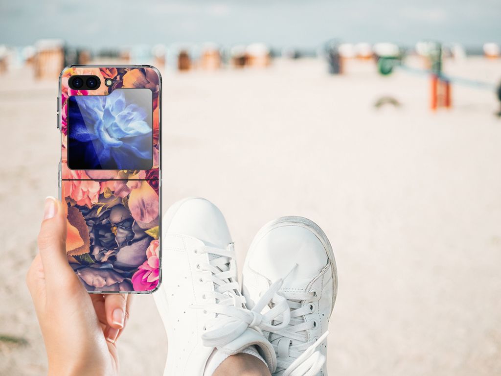 Dit Bosje Bloemen doet een mens en zijn smartphone goed. De oranje, paarse en roze bloemen op deze Samsung Galaxy Z Flip 5 TPU Case geven jouw smartphone een zeer sierlijke uitstraling. Je wordt er ook meteen vrolijker van als je aan het appen, mailen of aan het bellen bent. Valt dan je telefoon op de grond, dan zal er dankzij de tpu case met oranje, paarse en roze bloemen geen schade ontstaan. Helemaal niet als je er een screenprotector bij hebt gekocht. Onze tpu cases met oranje, paarse en roze bloemen zien er zeer prettig uit en zijn heel praktisch, getuige onder meer de opstaande randen en het flexibele materiaal. Alleen de achterkant van de tpu case wordt bedrukt met oranje, paarse en roze bloemen. Op deze tpu case is het ook mogelijk je eigen ontwerp te zetten. In no time ontwerp je zelf een tpu case met daarop foto’s van jouw favoriete bloemen.